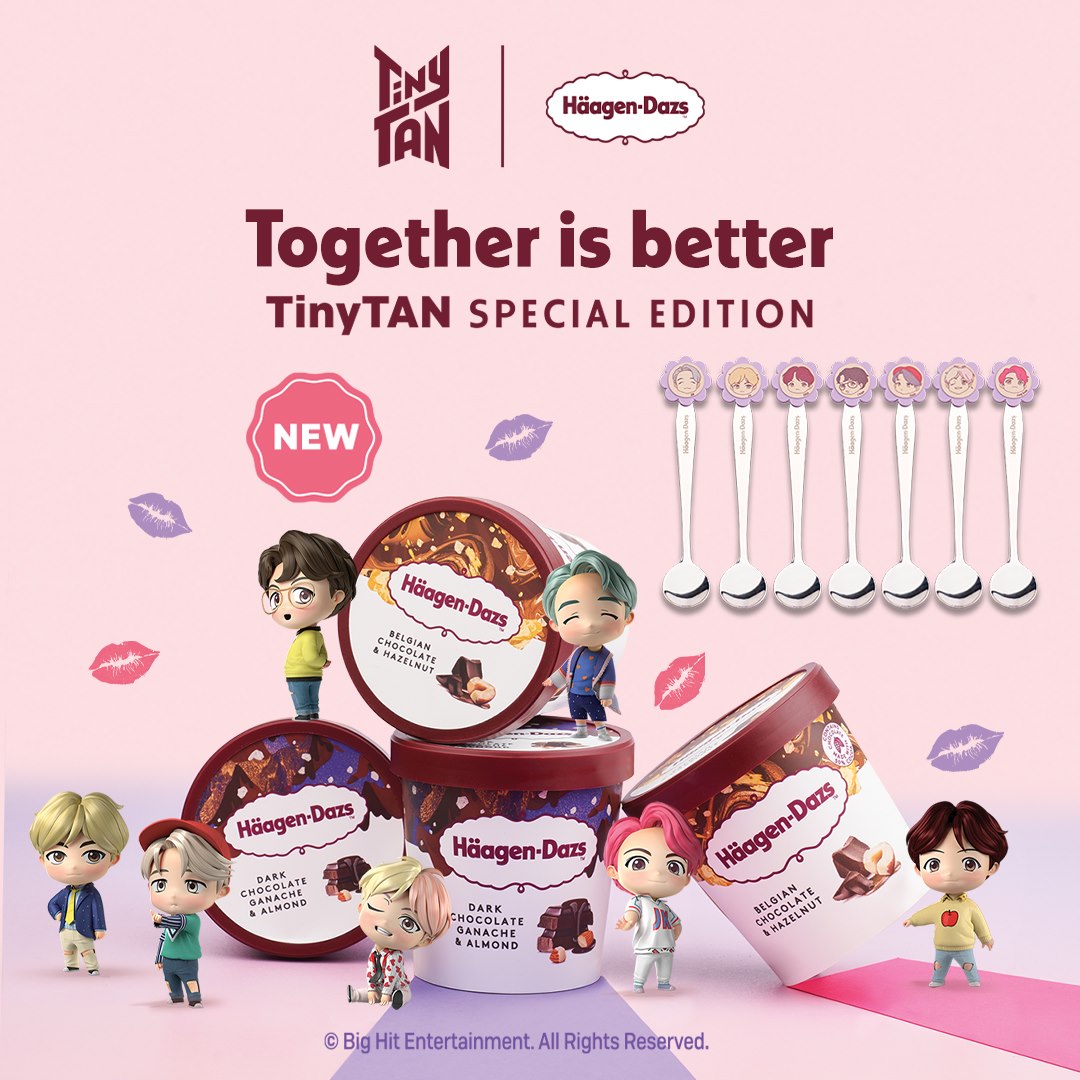 BTS 粉丝,有好消息!著名冰淇淋品牌Haagen Dazs 推出BTS 主题冰淇淋!还免费送出精美限量版TinyTAN 成员钥匙圈和汤匙哦!