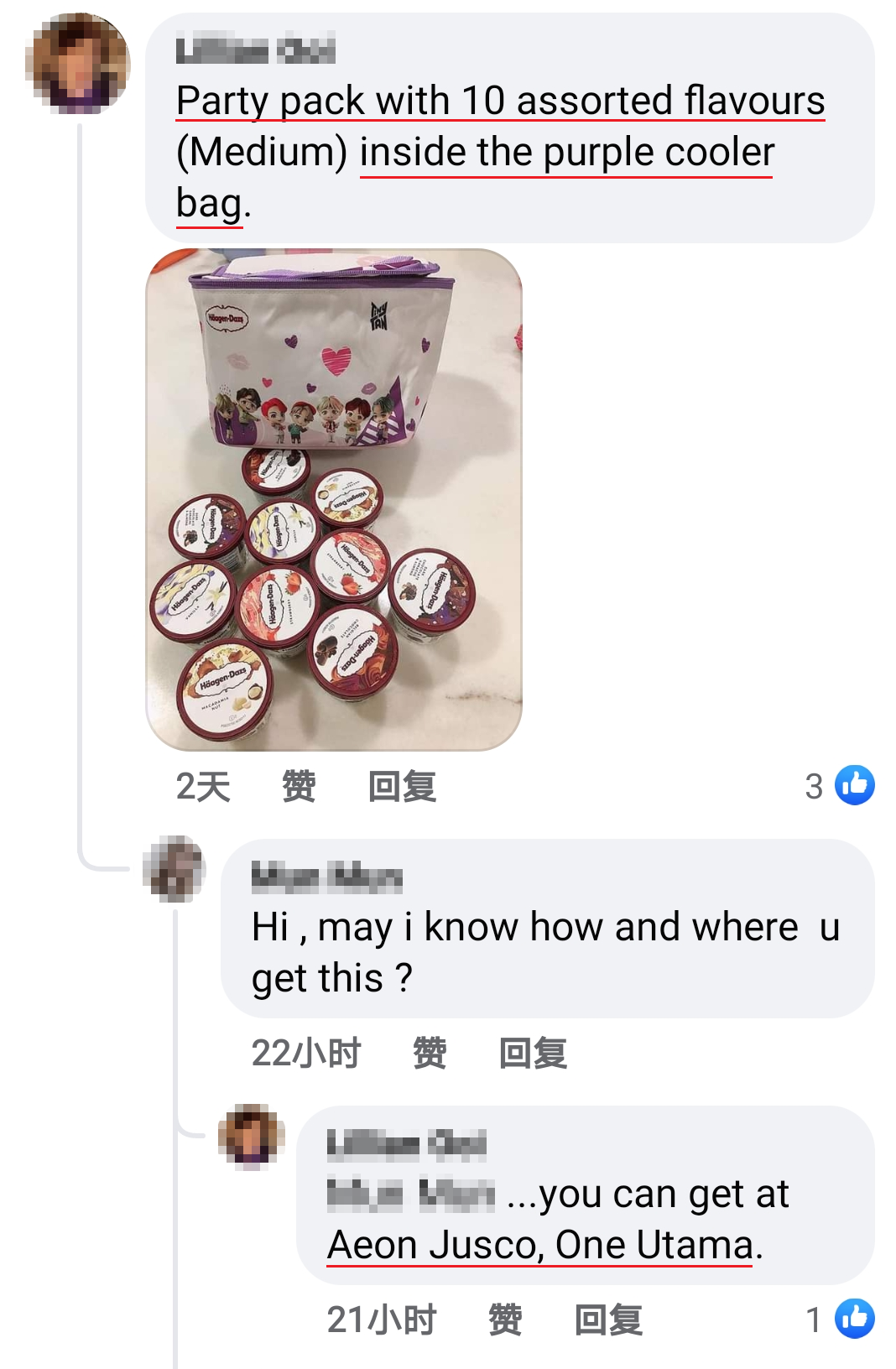 ▼ 不过,有网友分享「自己在One Utama 的Aeon Jusco 购买到Party Pack 的TinyTAN 保冷袋 」!