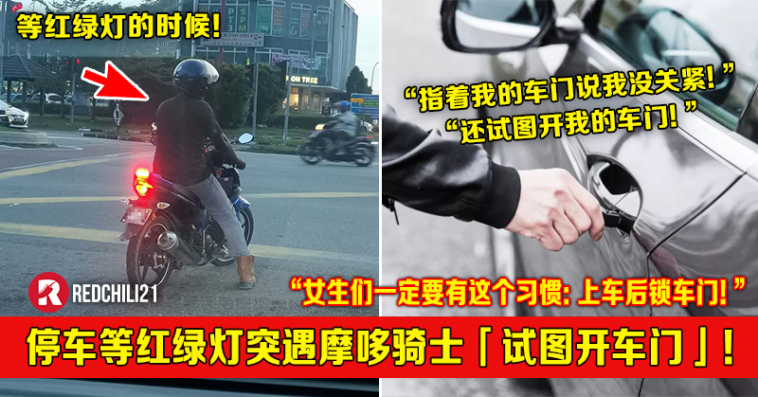 昨天,一名来自新山的年轻妈咪在面子书分享自己的恐怖经历,在等红绿灯的时候突然遇到一名陌生男子,骑着摩哆停在她的副驾座旁边,试图打开她的车门!