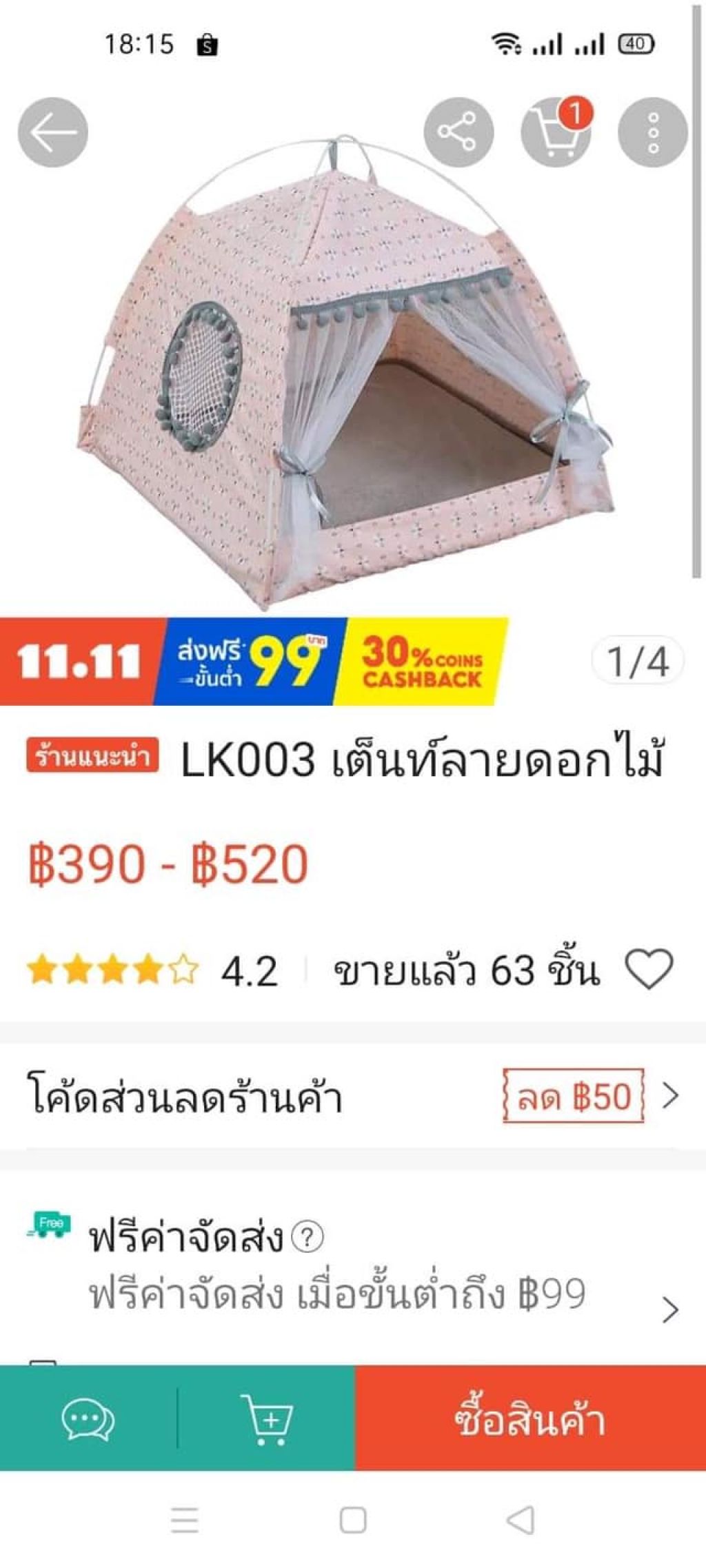 事主近日趁着双十一大促销,在著名购物平台购买了一顶情侣帐篷,打算和女友外出露营时使用。据该帖文分享的手机截图来看,事主下单的情侣帐篷,促销价只需390至520泰铢(约RM53至RM71)。