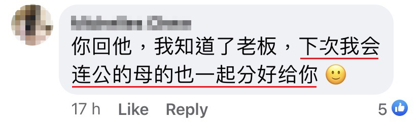 接着她还威吓贴主:「我老公说要跟你claim(要求赔偿),不然就post去“巴生人”(面子书群组)。你说怎样办?」