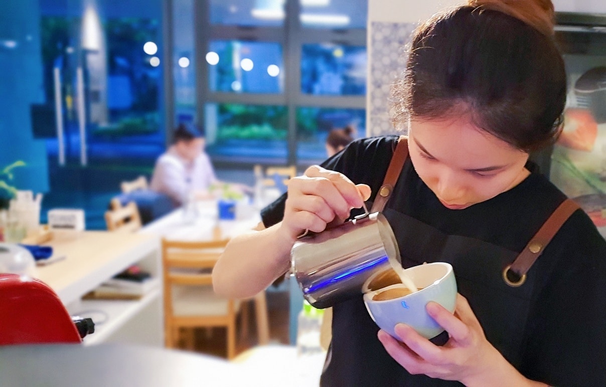 5年前,她在书签咖啡半工读,每天下课后就习惯性地加快自己的脚步,以匆忙的步伐来上班。工读生的薪资不多,但她知道她为的是将来,她知道她走在正确的路上。