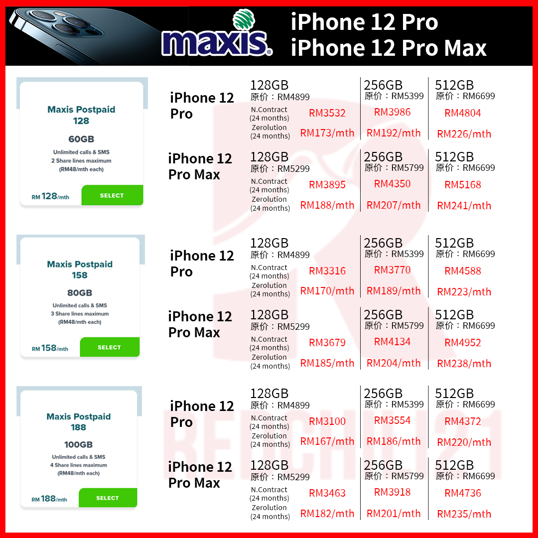 ▼ Maxis —— iPhone 12 Pro 和iPhone 12 Pro Max 手机配套价格
