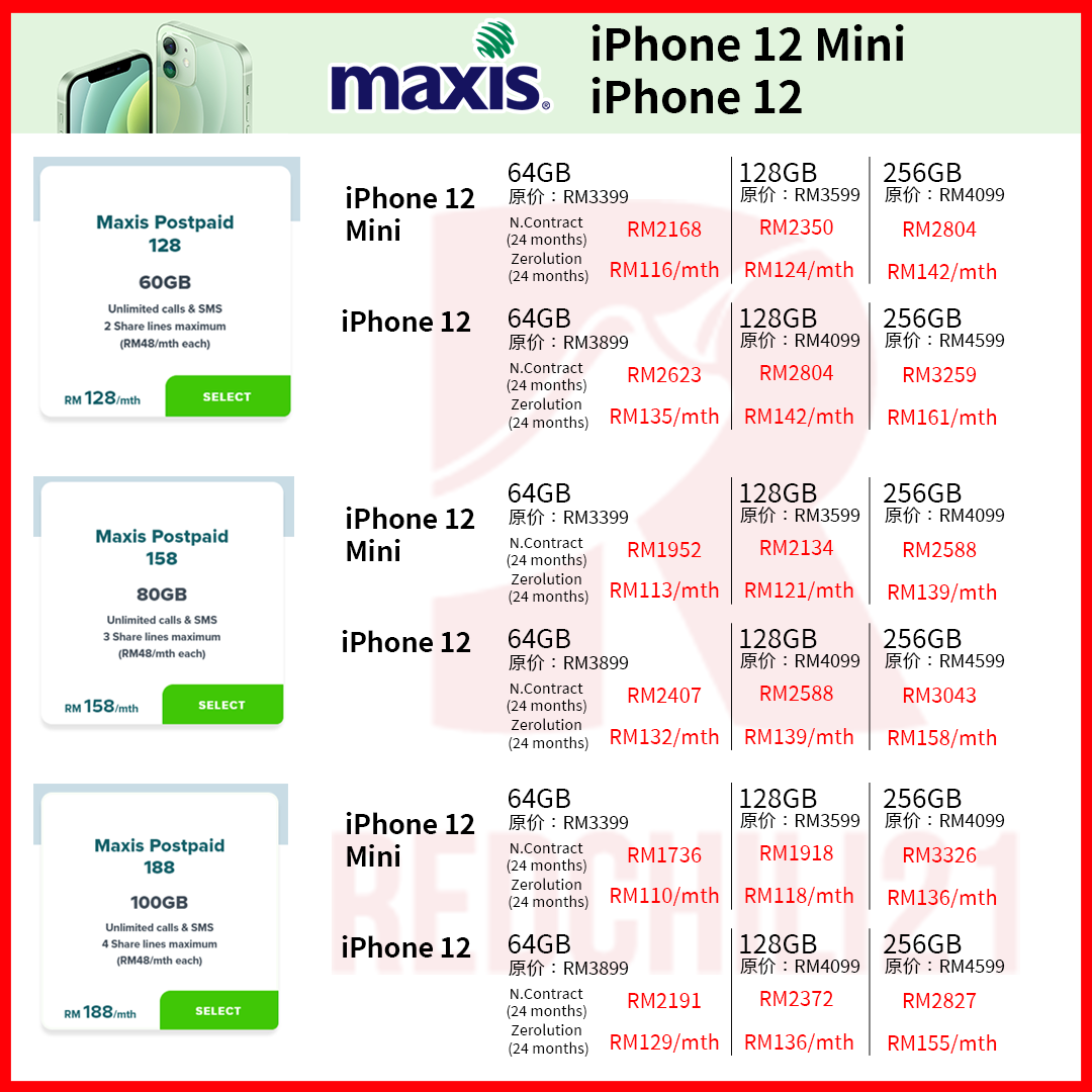▼ Maxis —— iPhone 12 Mini 和iPhone 12 手机配套价格