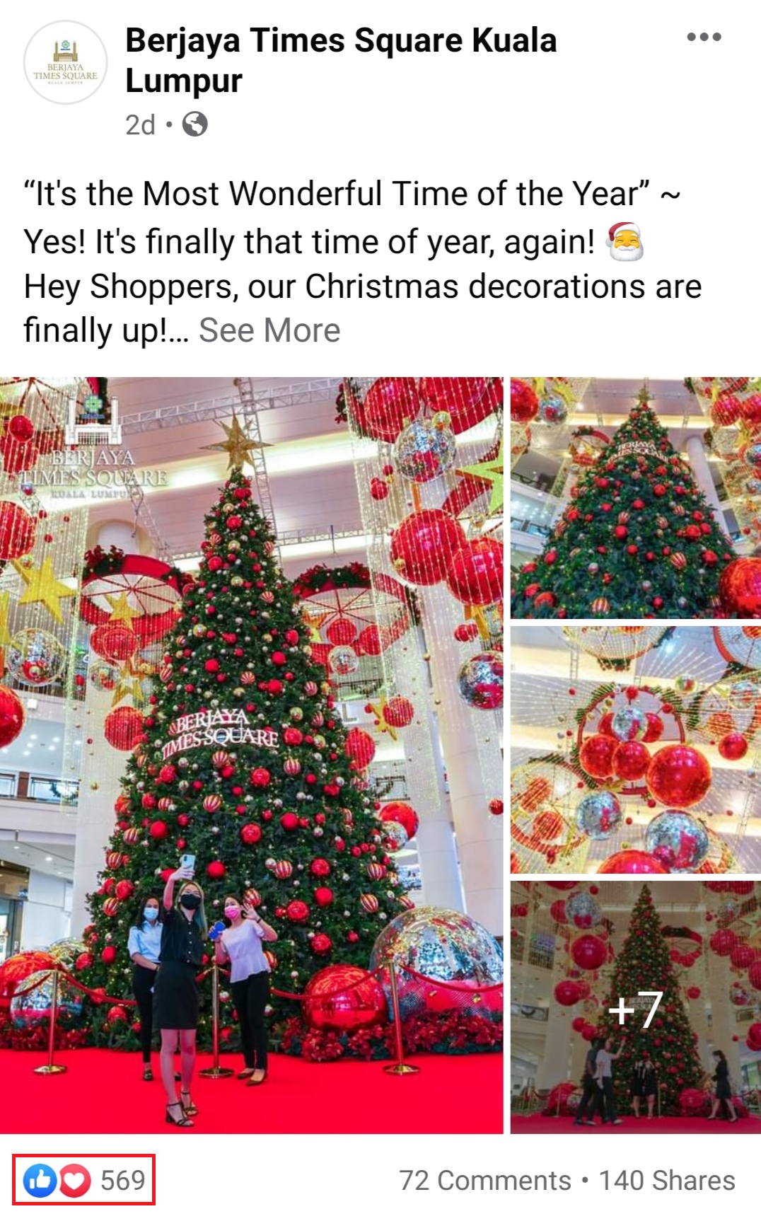 ▼ 今年Berjaya Times Square 的圣诞装饰和去年的非常相似!还是以红色彩球及闪闪发亮的吊坠为主!
