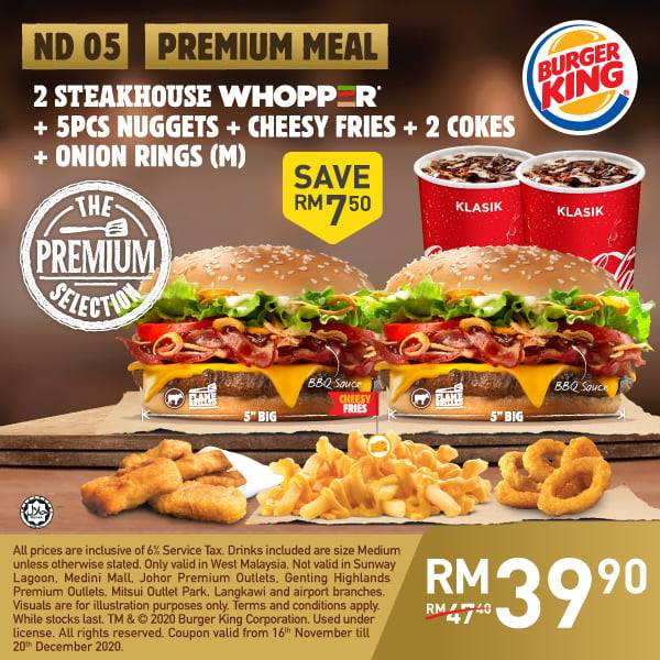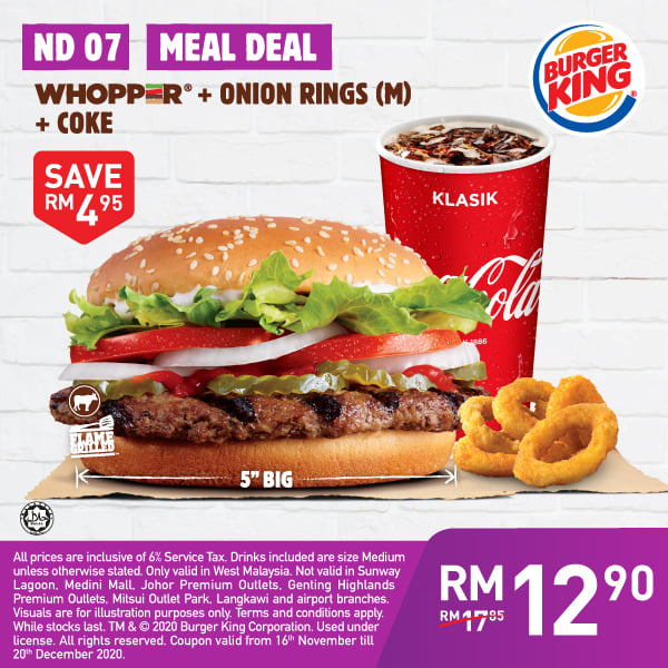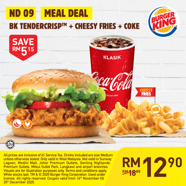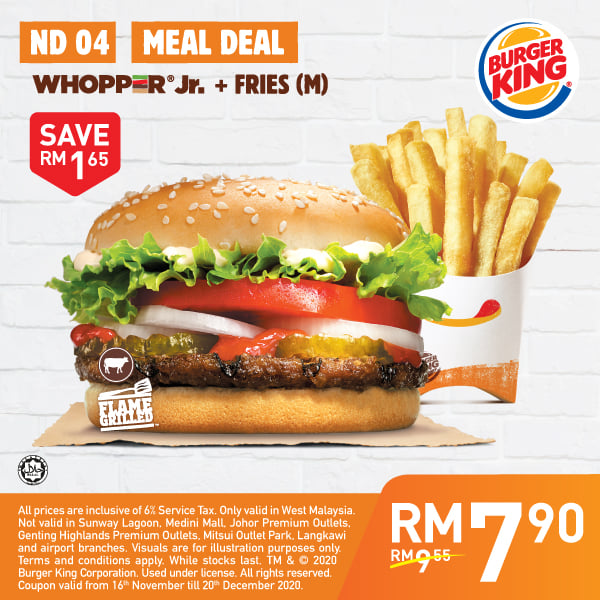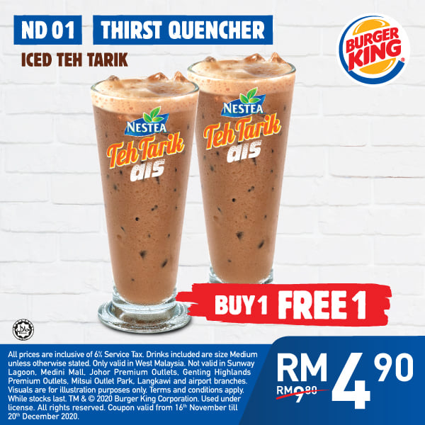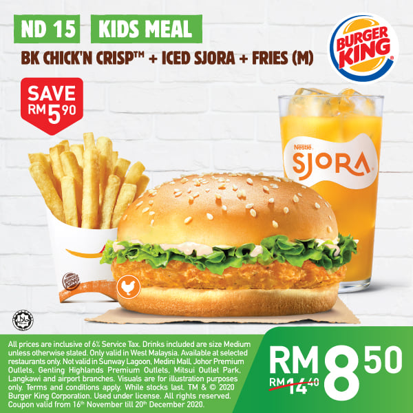 促销地点:西马Burger King 分行(除了Medini Mall、Sunway Lagoon、Genting Highlands Premium Outlet、Johor Premium Outlet、Mitsui Outlet Park、Langkawi 及机场分行)