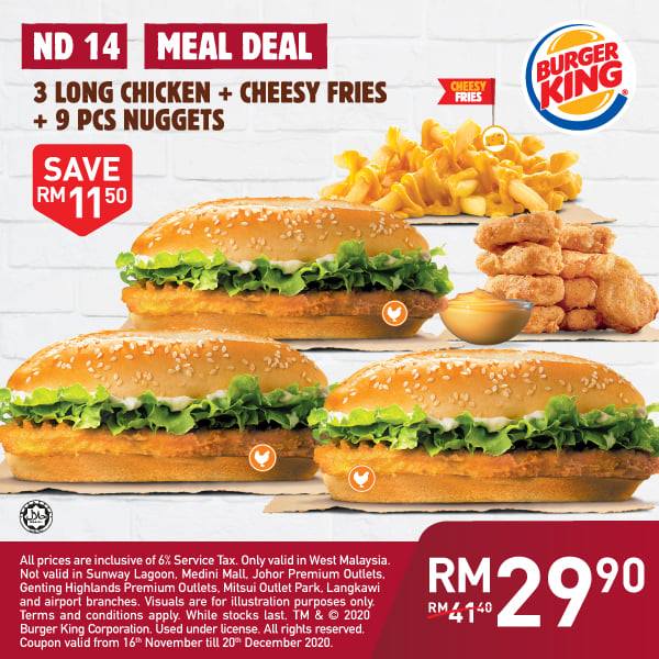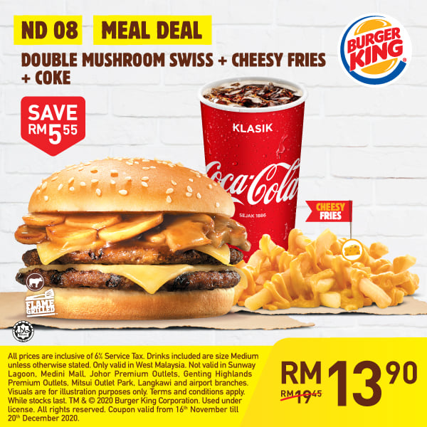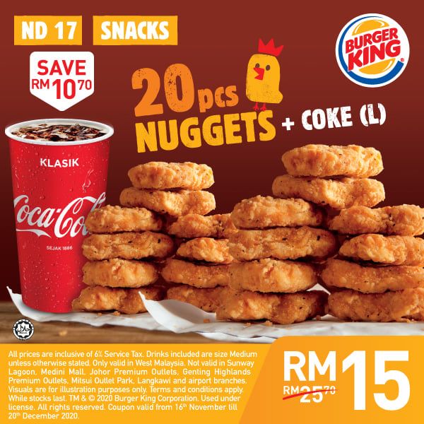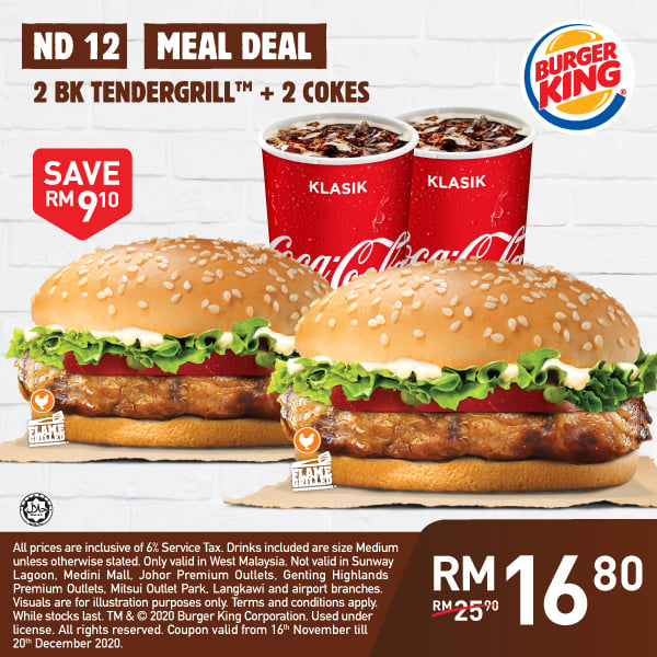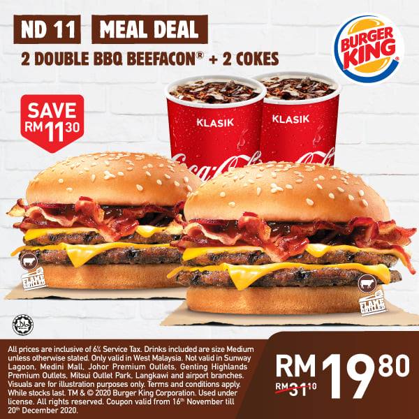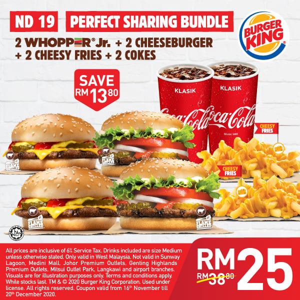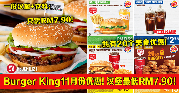 Burger King 11月份再次推出「20个美食优惠券」促销!4粒汉堡+2粉芝士薯条+2杯饮料只需RM25,鸡肉汉堡+饮料+薯条只需RM8.50!