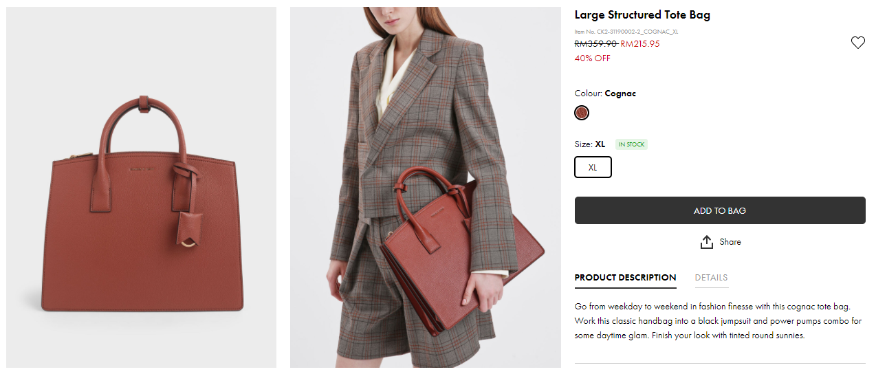 ▼ Large Strutured Tote Bag【折扣40%】 —— 只需RM215.95(原价:RM359.90)
