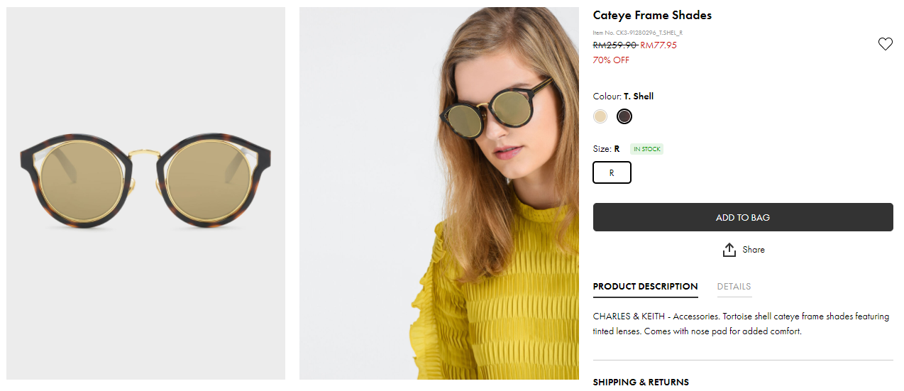 ▼ Cateye Frame Shades【折扣70%】 —— 后只需RM77.95 (原价:RM259.90)