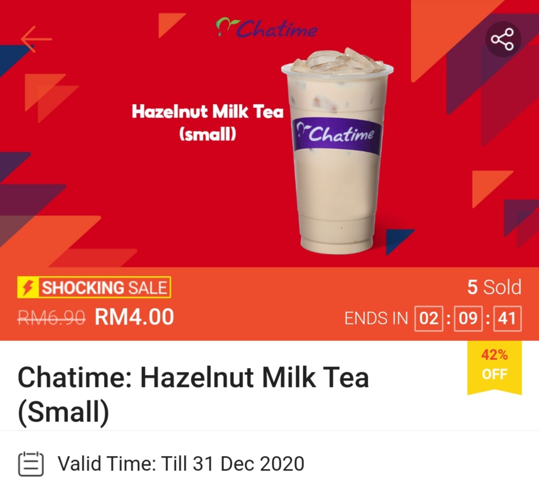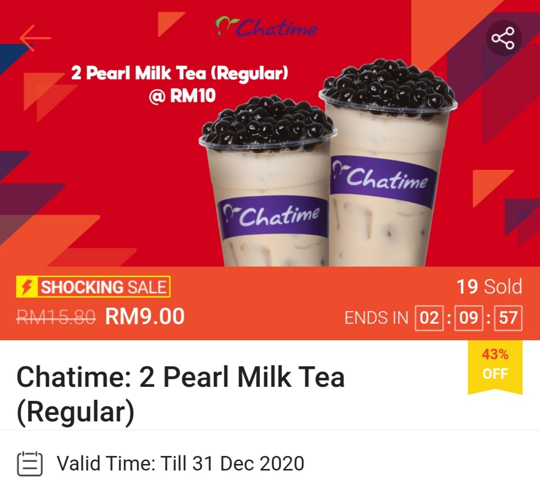 这次Chatime 与大马网购平台Shopee 联合推出优惠券,饮料折扣高达43%,最低只需RM4!
