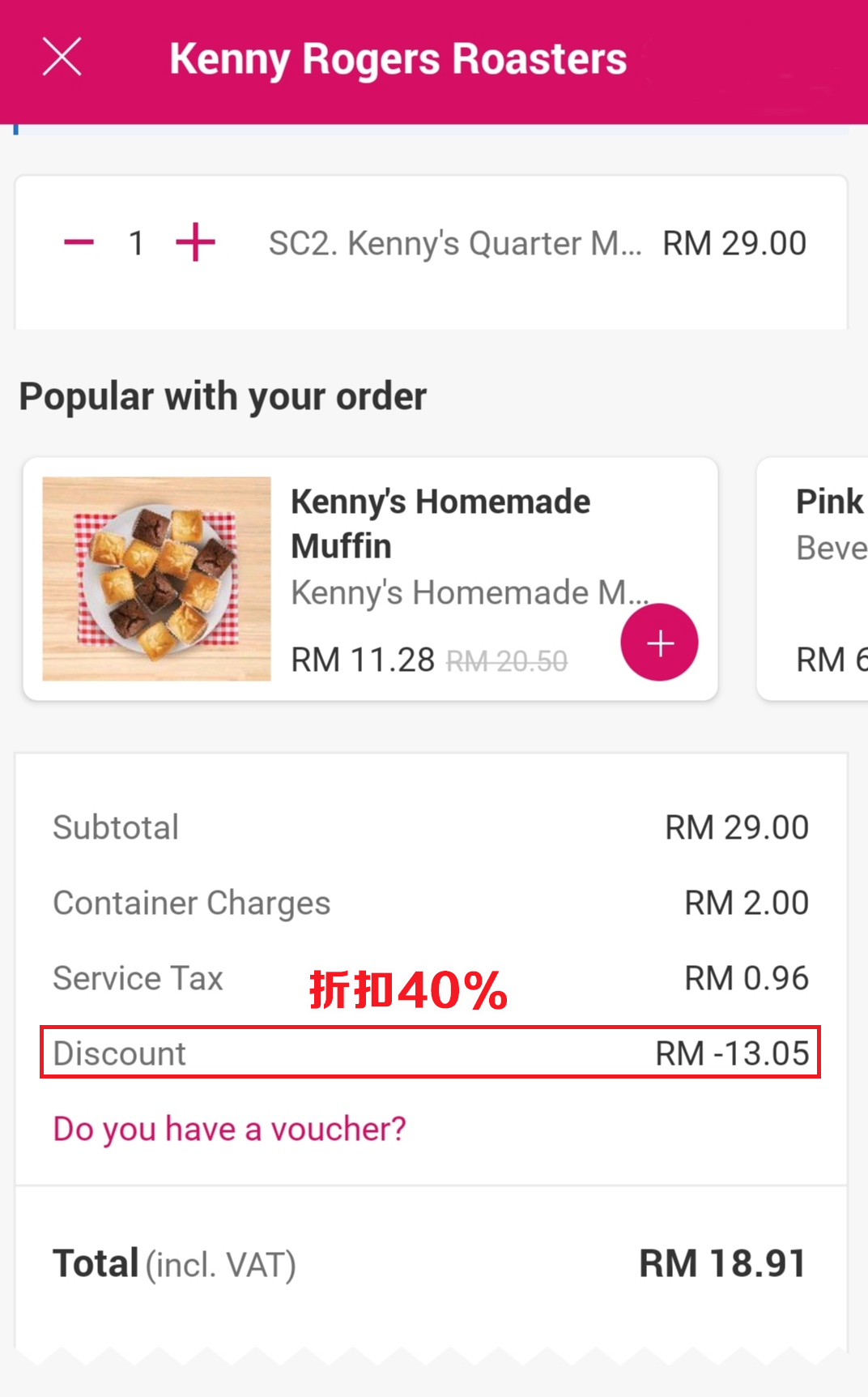▼ 如:Kenny Rogers Roasters 可享有折扣30%+15%Pick Up!