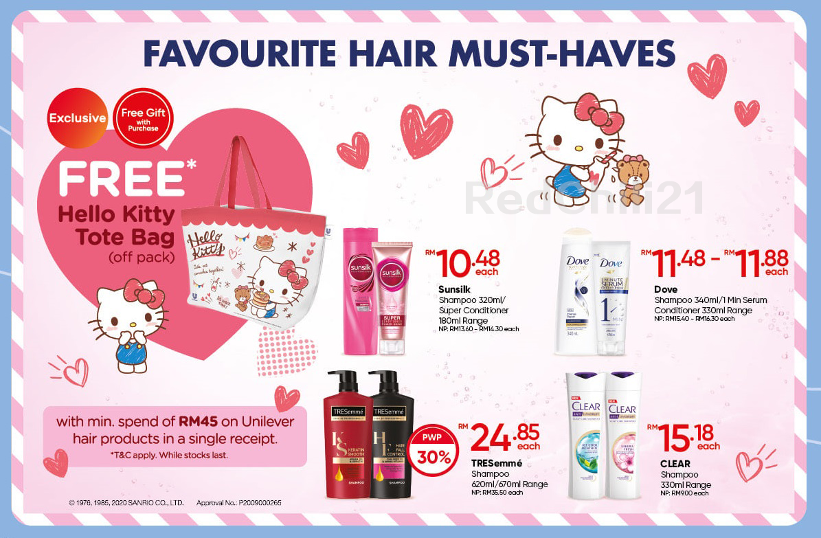 - 只需购买指定的商品RM45或以上就能免费获得Hello Kitty限量版包包