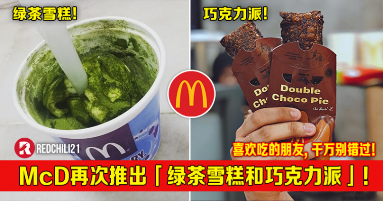 麦当劳爱好者,又有口福了!大马McDonald’s 在这【11月份】推出大家喜爱的Green Tea McFlurry 和巧克力派(Chocolate Pie)!