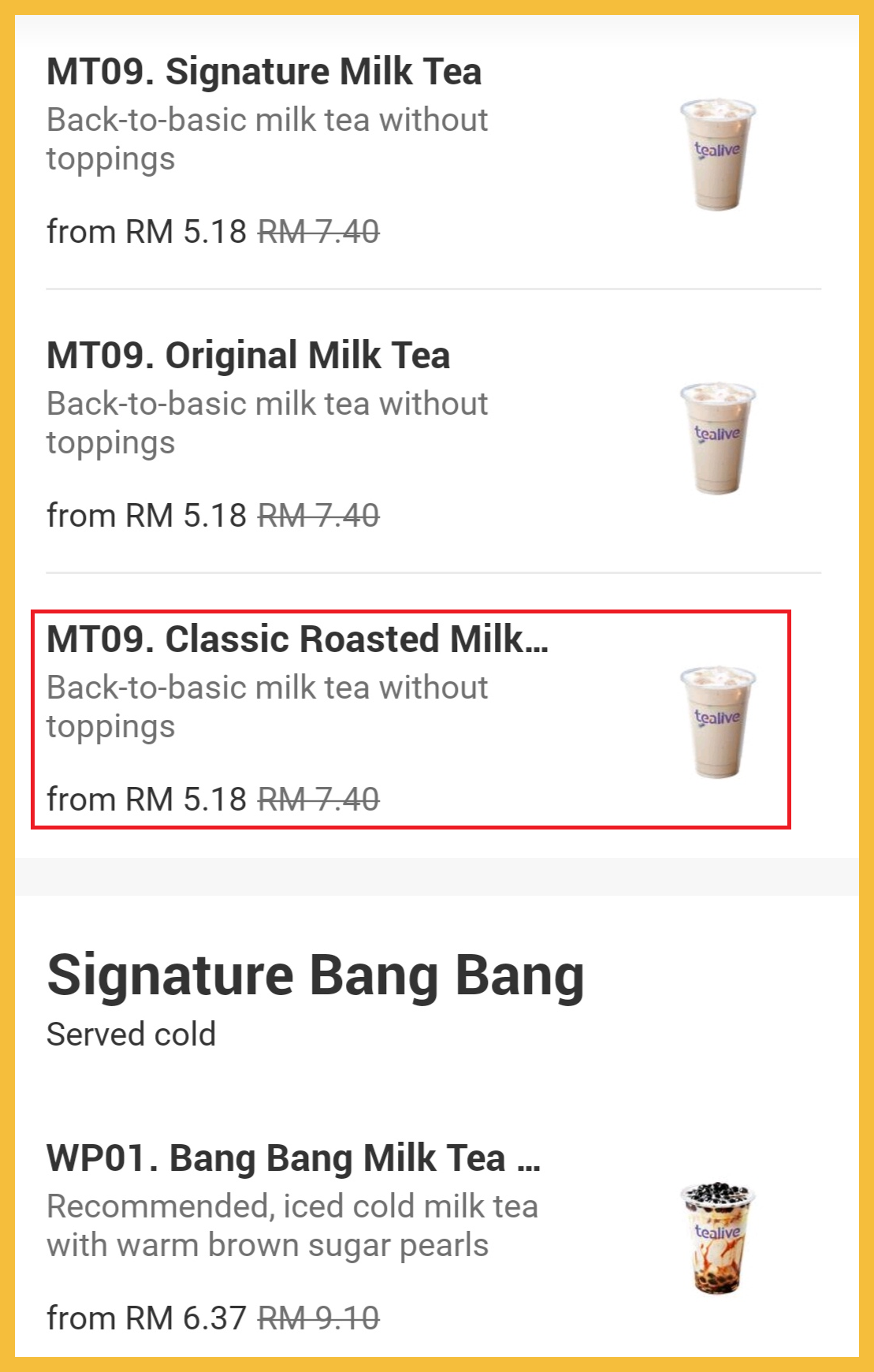 如今使用这方式购买Tealive 饮料,可享有折扣30%+折扣RM6!一杯饮料只需RM3.18!是不是觉得比起你在Tealive 柜台买还来的便宜呢?!