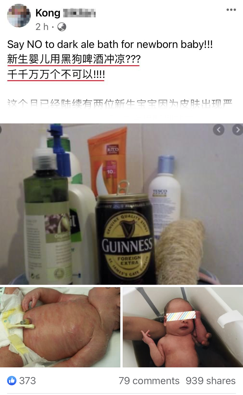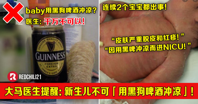 今天大马一名女医生通过面子书发文提醒网民,不要随便拿黑狗啤酒给新生婴儿冲凉,这有可能会造成宝宝皮肤过敏,曾经有宝宝甚至因此而被送入医院的加护病房!
