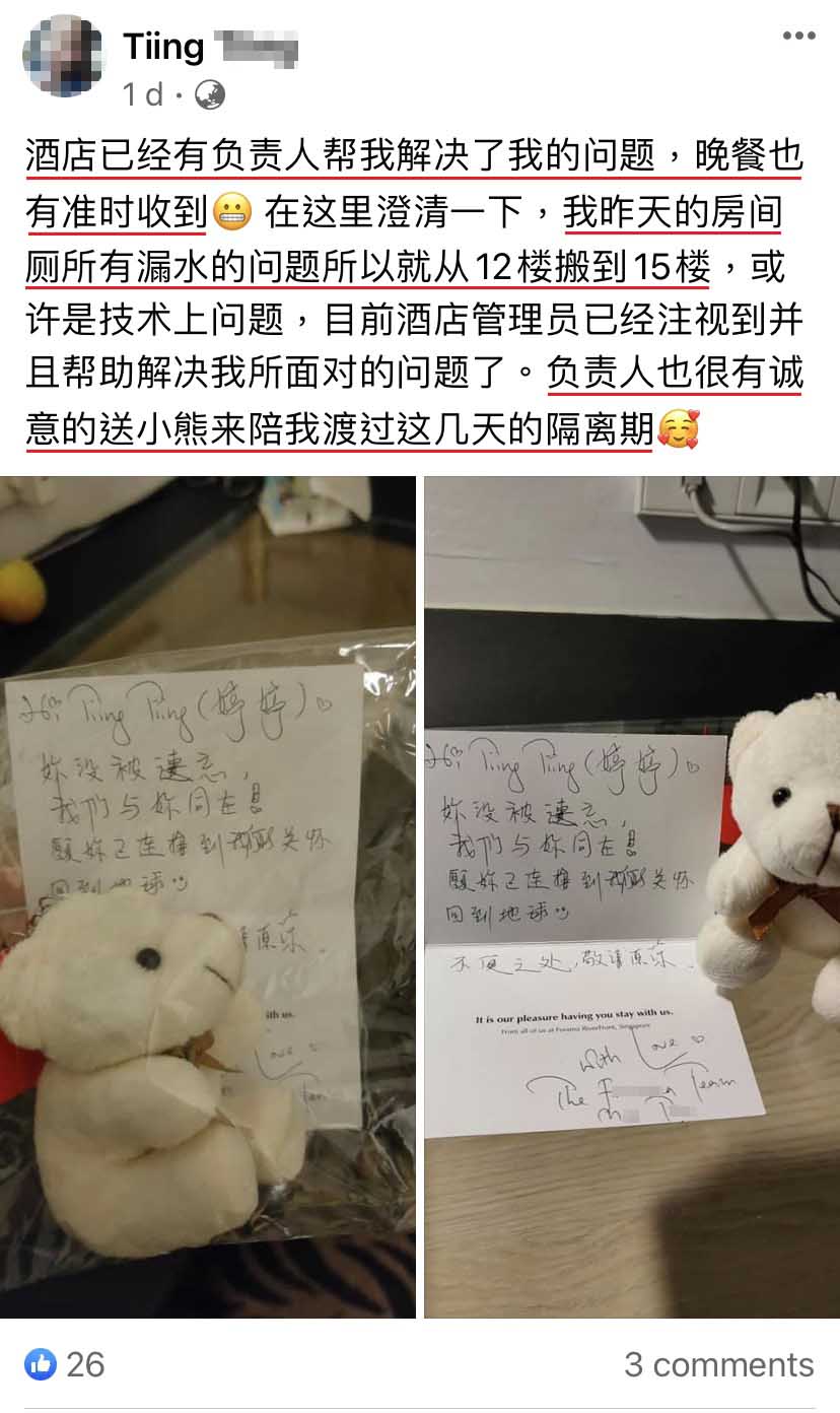 近日一名大马女网友在面子书PO文发泄,在新加坡开始14天的酒店隔离,结果才第二天就被“遗忘”没有饭吃,连酒店的WiFi也连不上,酒店给的回应让她“怀疑人生”!
