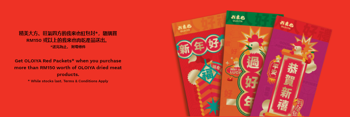 ▼ 此外,消费RM150 或以上购买我来也肉干产品将送出精美红包封!