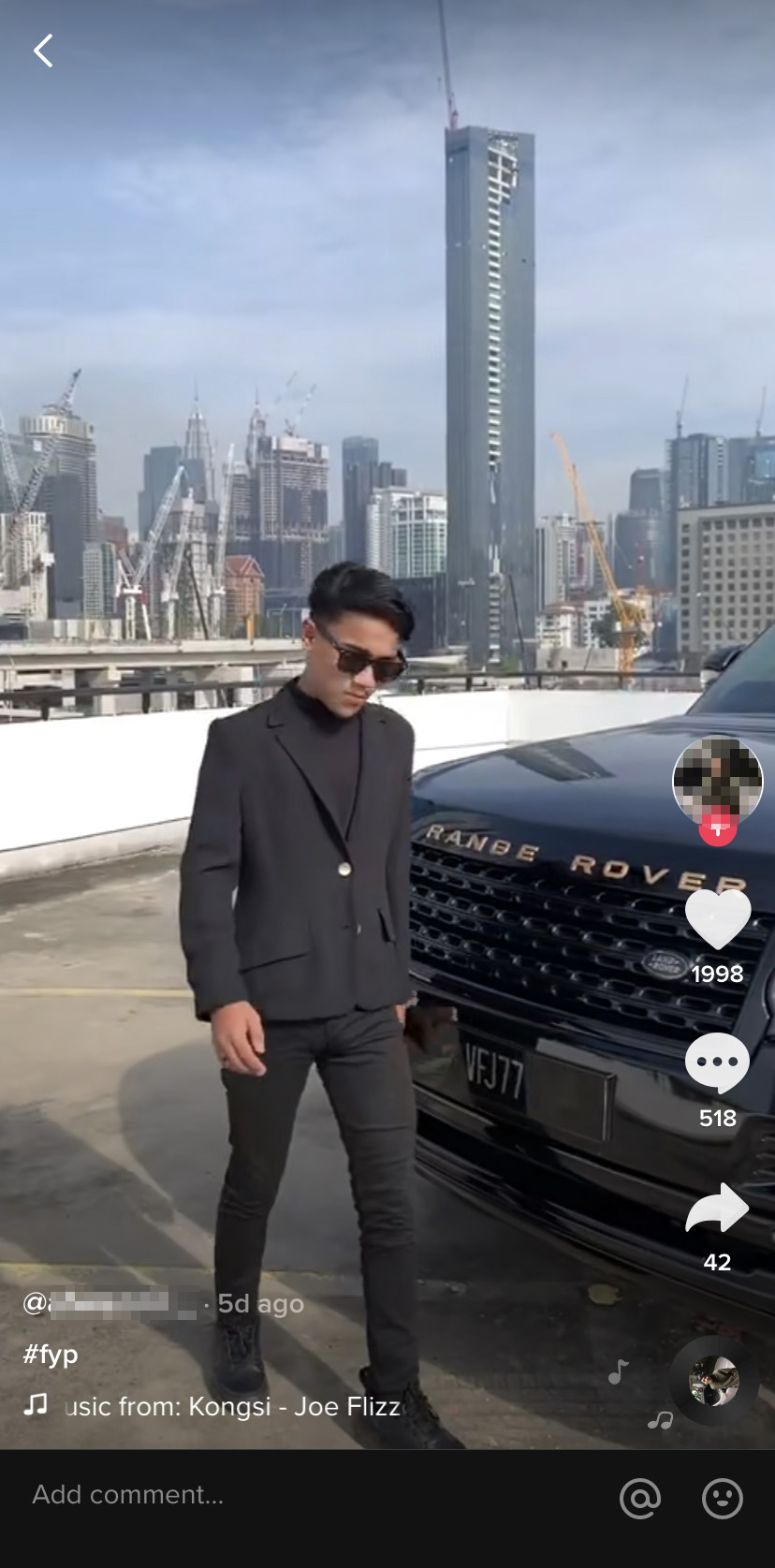 ▼ 视频里,男子穿着一身黑色的西装和皮鞋搭配着酷酷的墨镜,帅气地从 Range Rover 的驾驶座走出来。毋庸置疑,这就是一段很明显的“炫富视频”。