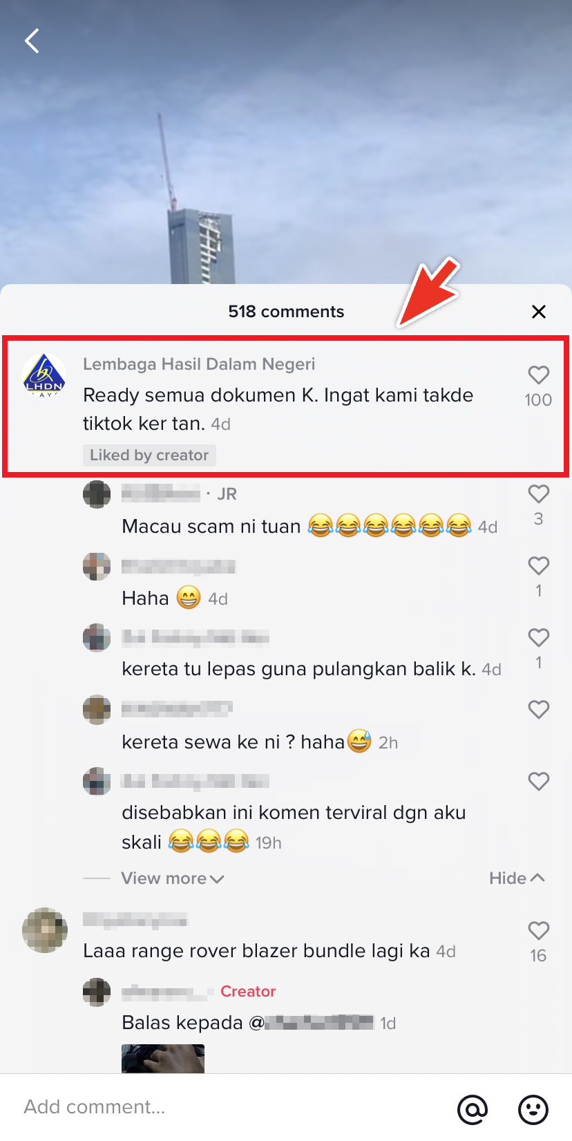 ▼ 大马内陆税务局(LHDN)留言写道:「准好所有的文件,OK?以为我们没有 TikTok 是不是。」