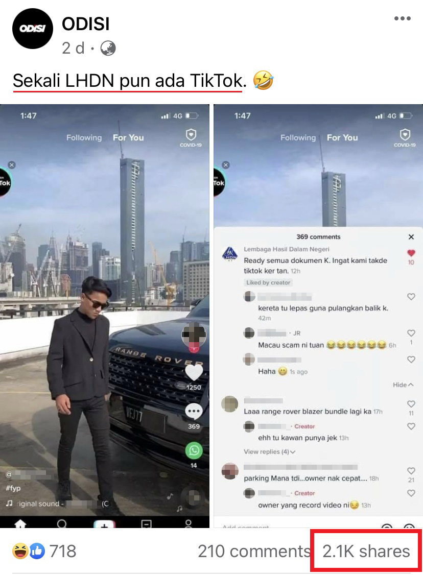 近日一名大马男子在 TikTok 上传和高级豪车合拍的影片,结果被大马的内陆税务局(LHDN)逮个正着!