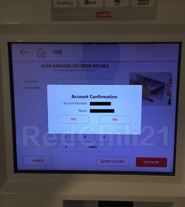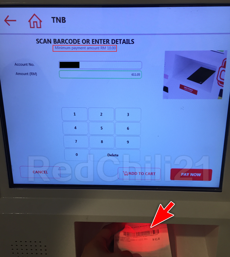 ❸ 跟随(机器荧幕)指示把TNB 账单放在扫描处 (你也可以手动自己输入Account No)