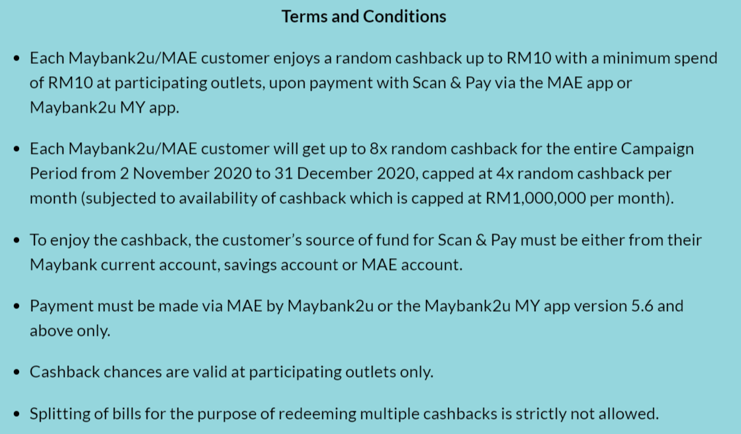- 必须使用Maybank2u 或MAE App Scan & Pay 功能
