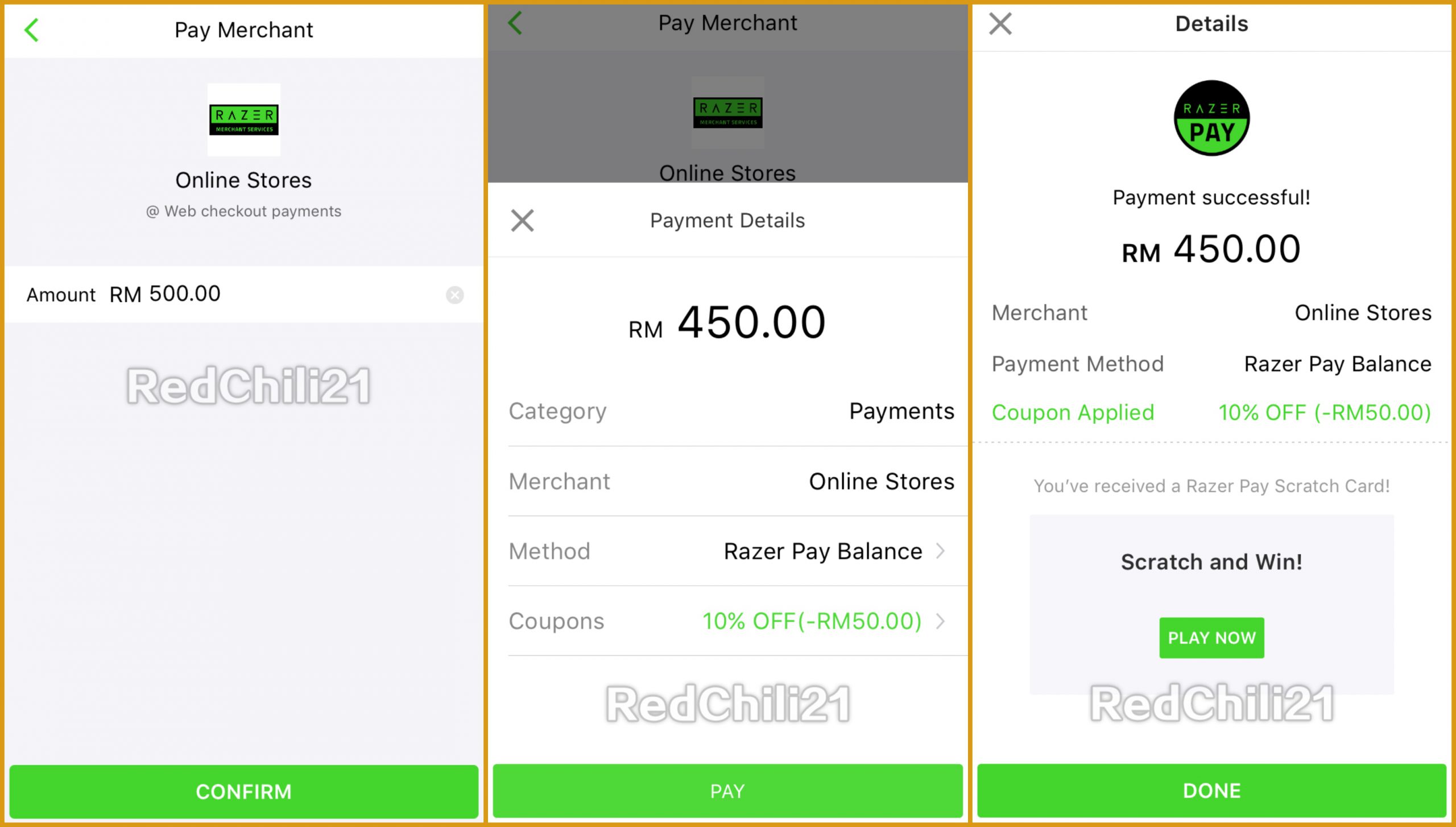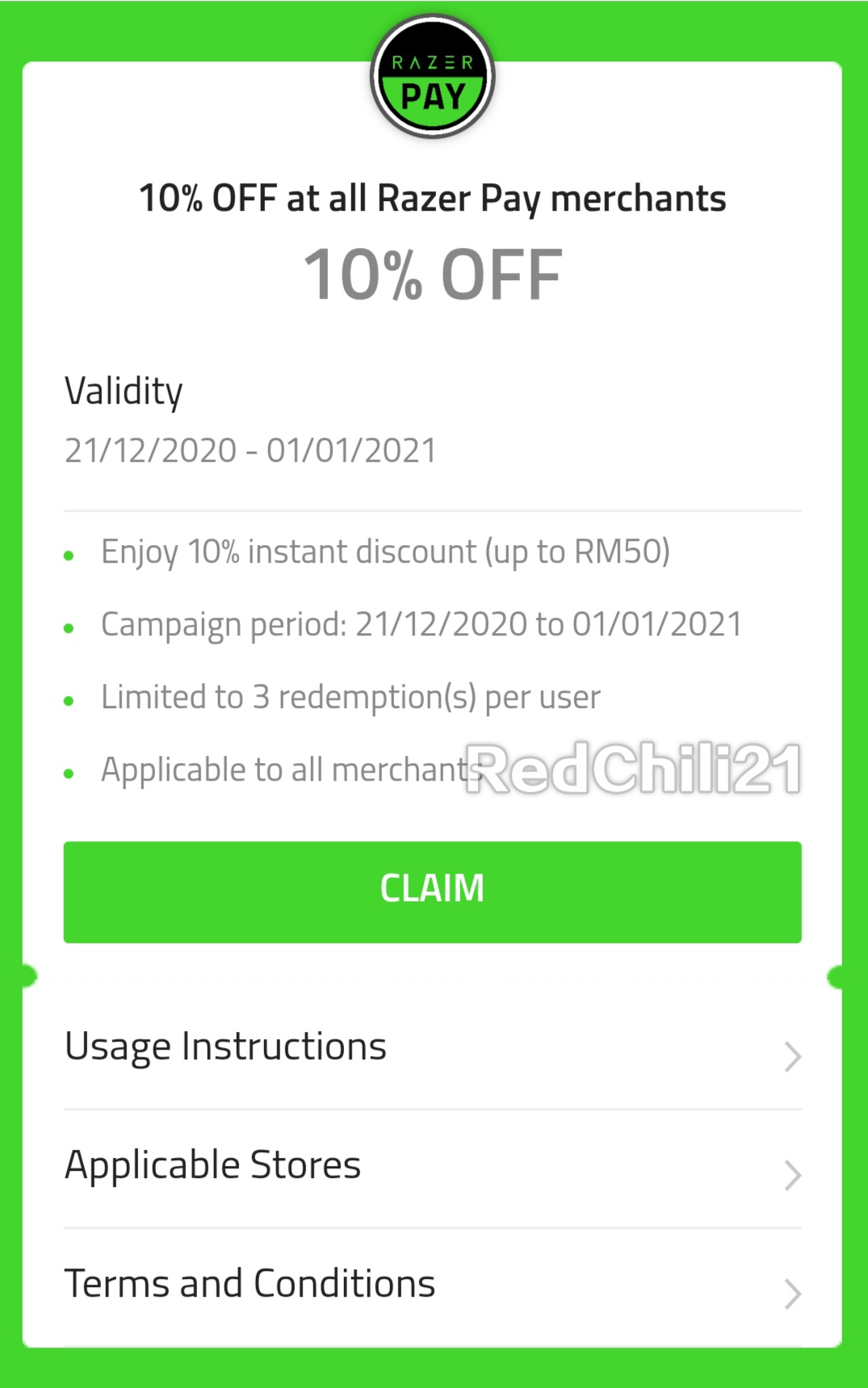 a)Razer Pay 10%折扣优惠券(最高可获得RM50折扣, 总计可获高达RM150折扣)