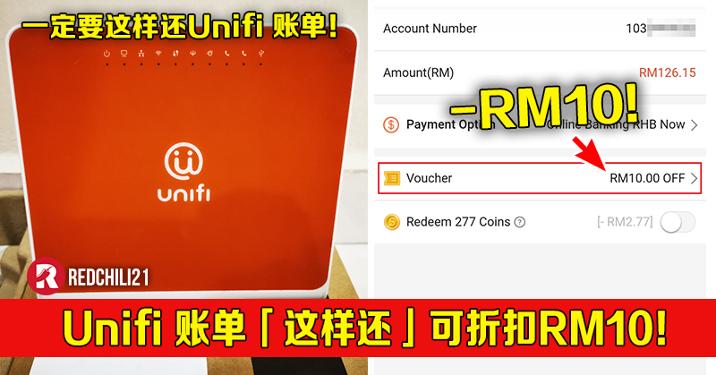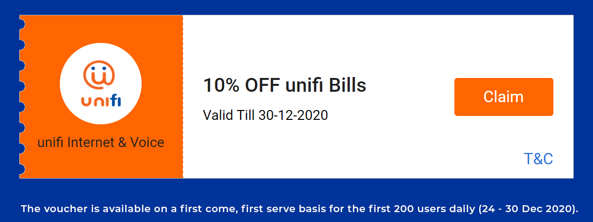 2)在Shopee 领取Unifi 账单折扣卷,可获得10%折扣(最高折扣RM10)
