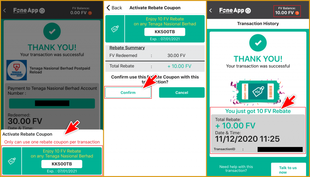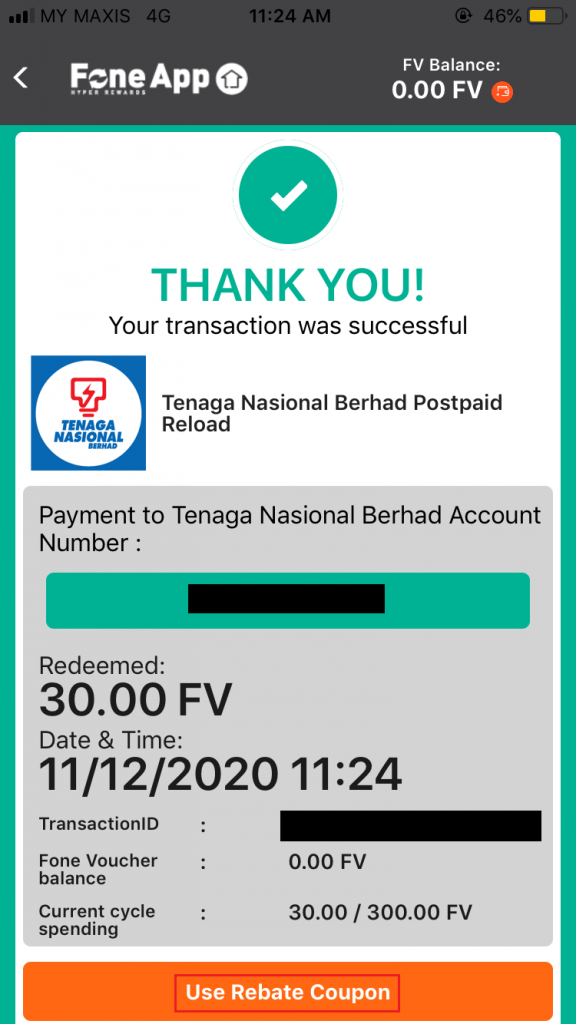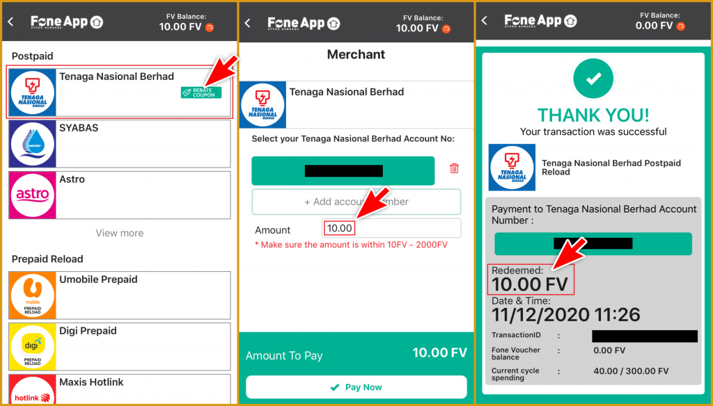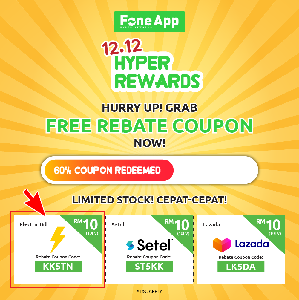 3)Fone App —— 【12.12】缴付TNB电费可折扣RM10!