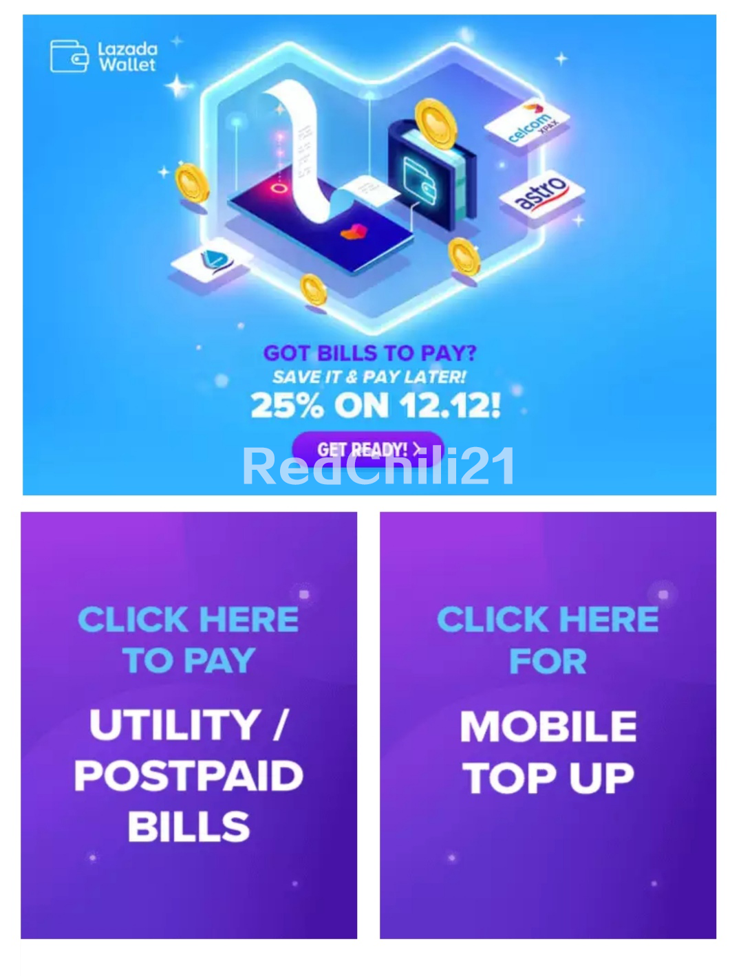 促销活动:Lazada —— 缴付水电费或电讯账单可获得25%现金回扣