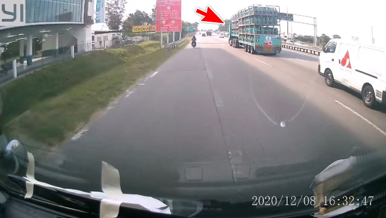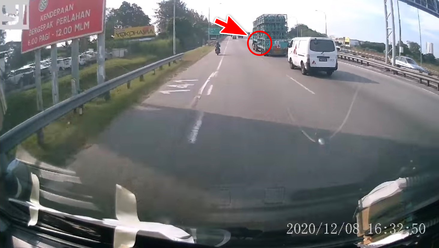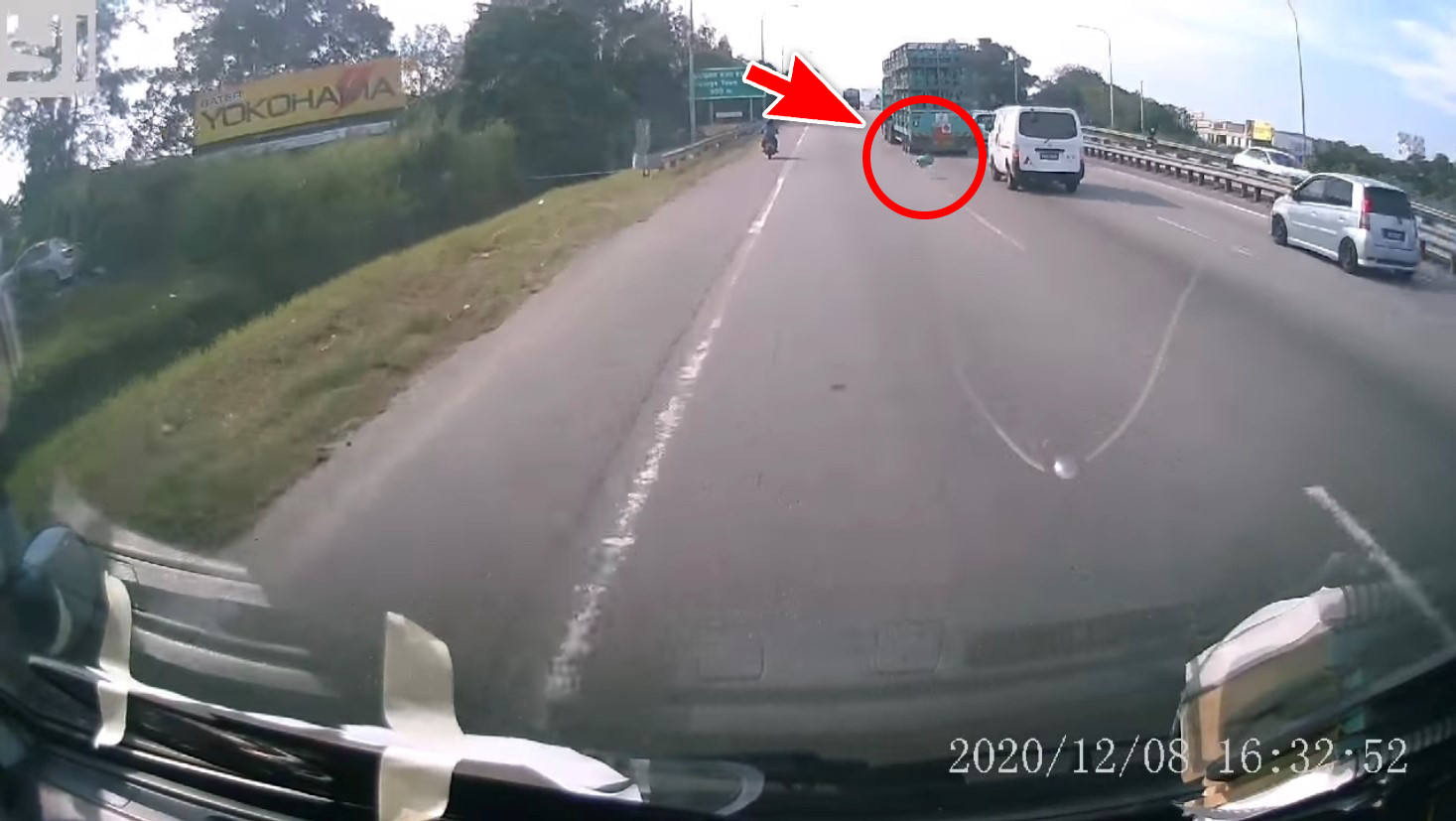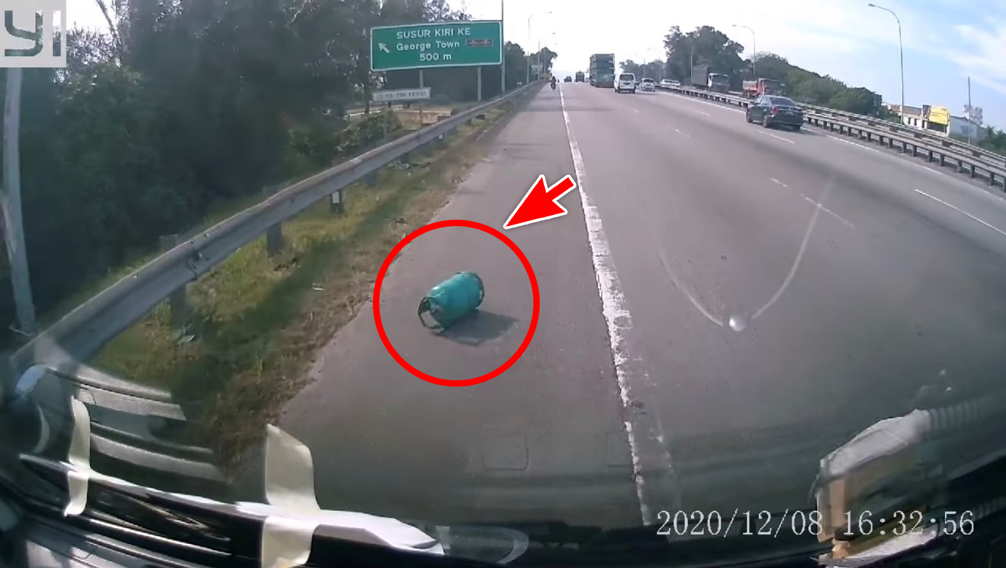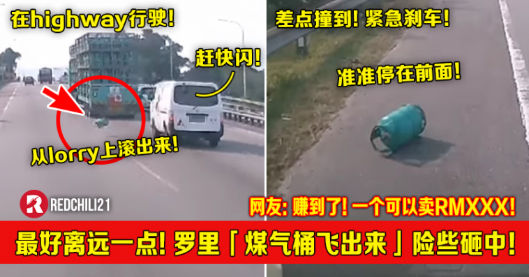 近日一段行车记录器的视频画面在网上流传,载着煤气桶的罗里在高速公路行驶时,罗里上的其中一个煤气桶突然飞出来,差点砸中后面的车辆!