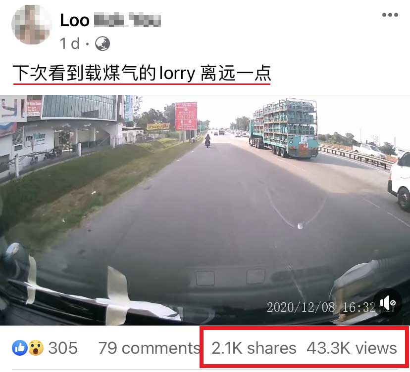 ▼ 短短16秒的视频中,一辆载满煤气桶的罗里在南北大道上缓缓地行驶。