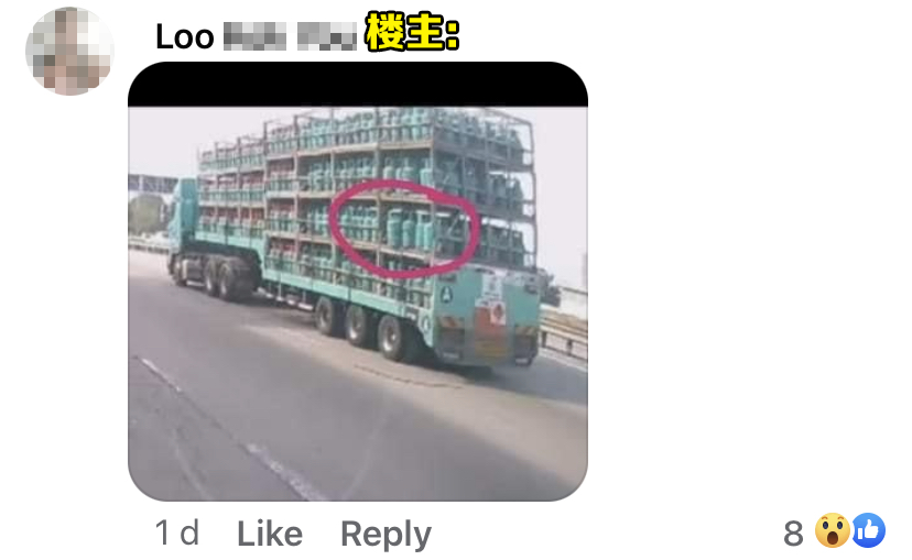 ▼ 不过事后贴主留言回复,该煤气桶最后被罗里司机拿回去了。