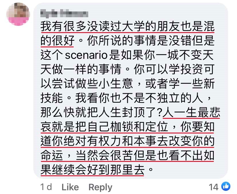 ▼ 更多网友建议的是存钱读大学,拿到文凭以后再出来找更高薪的工作。