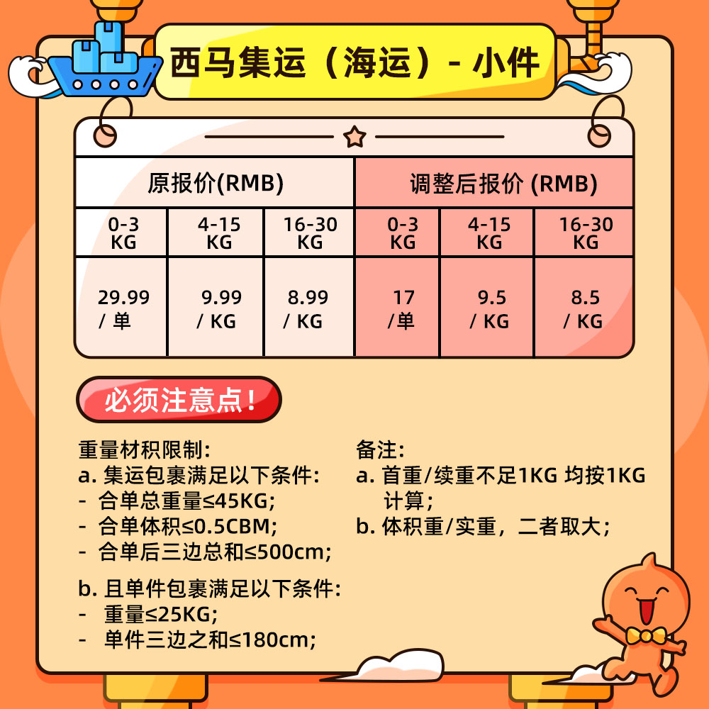 淘宝宣布官方运输价格下调!附上西马和东马运输价格表!