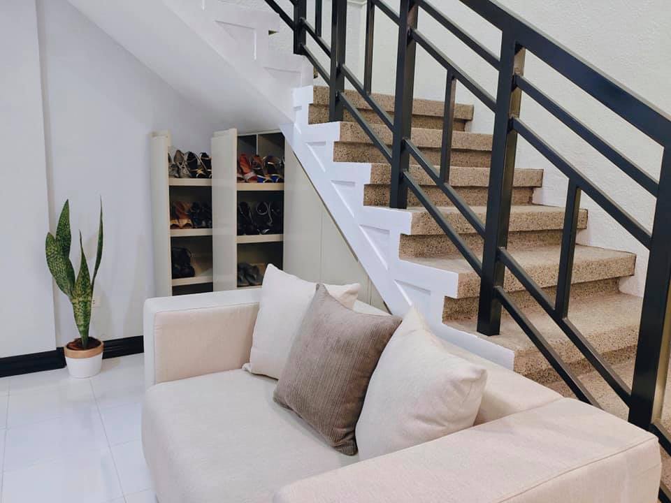 ▼ 利用空间摆放鞋子;楼梯口还有沙发,方便老人家坐着歇息。
