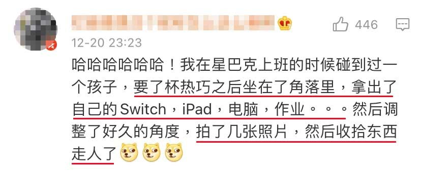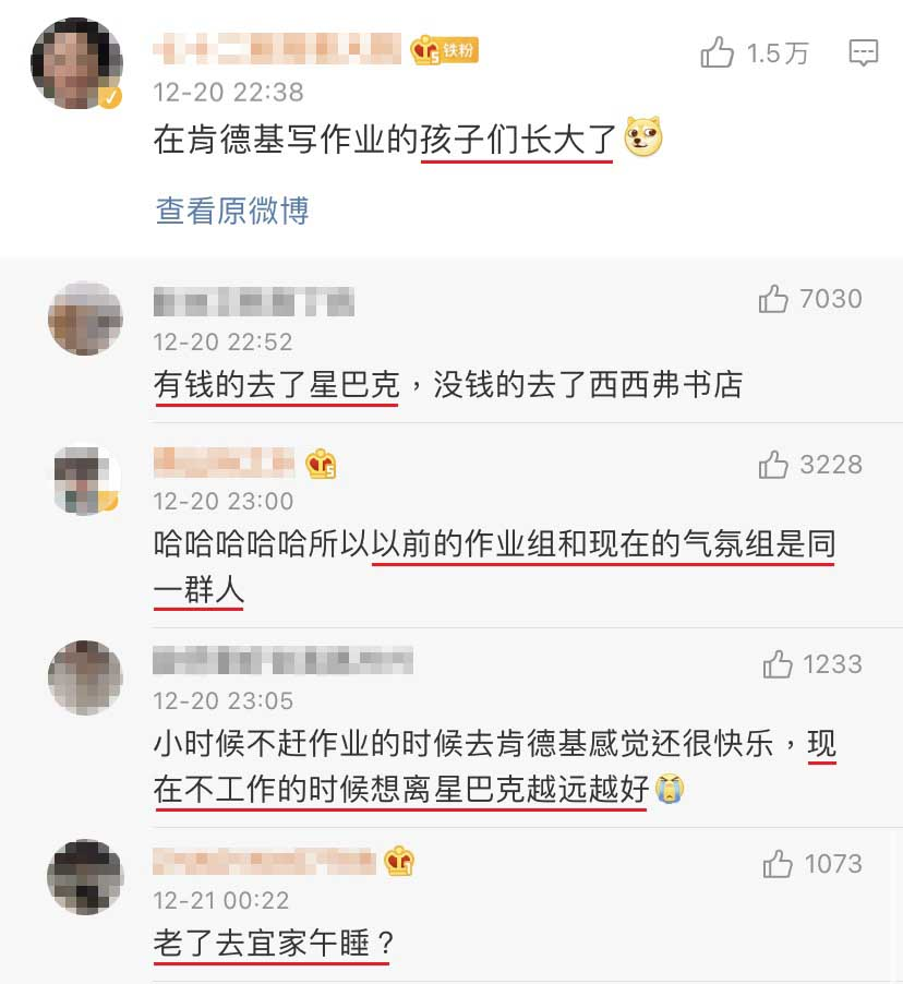 ▼ 一些网友则表示:这些星巴克气氛组,就是小时候在肯德基做作业的“那群人”。