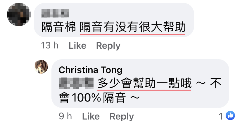 ▼ 至于隔音棉是否有很大的效果,Christina这么回应: