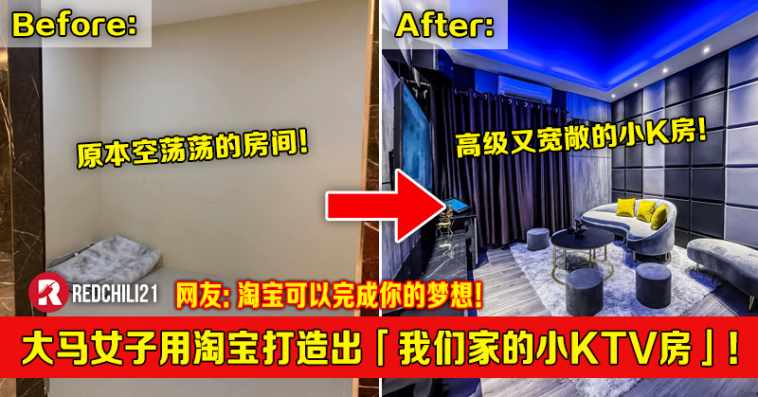而这名大马女网友如今梦想成真!Christina 在淘宝购买了 KTV 的设备加上房间的装潢,高级又宽敞舒适的小小 KTV 房就完成了!