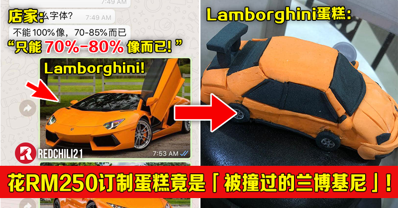 大马女子花RM250订制蛋糕竟是「被撞过的Lamborghini」!网友:哈哈哈!你这个是 “Lembu Ini” 才对!