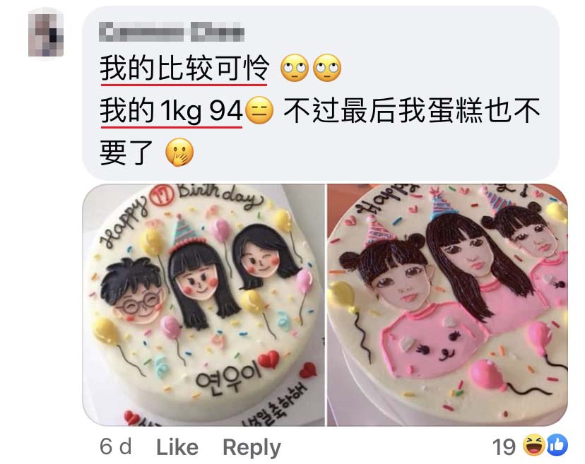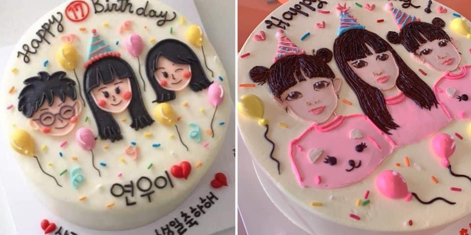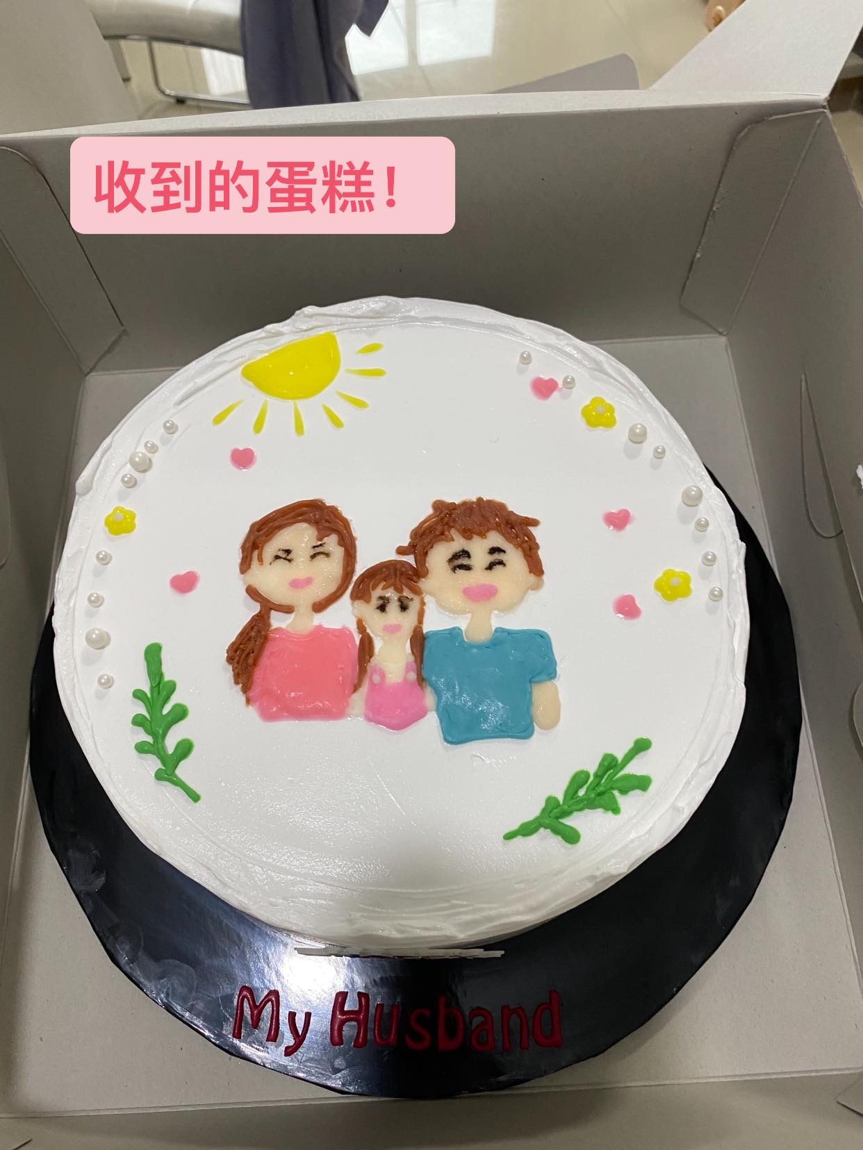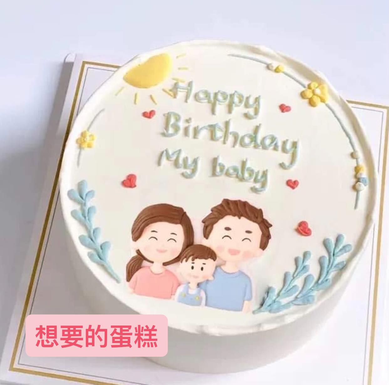 ▼ 她理想中的生日蛋糕是时下最流行的「韩国INS风」,蛋糕上画着幸福美满的一家三口,还有写着:「生日快乐,我的宝贝。」