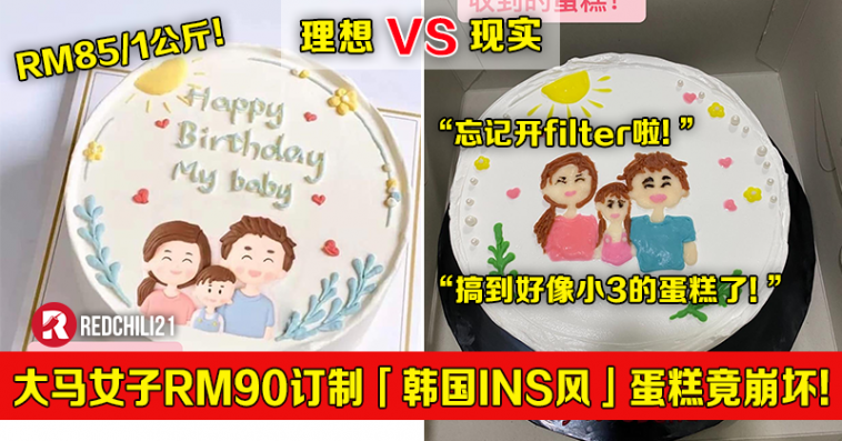 日前一名大马女网友分享两张蛋糕的照片,理想和现实的差距令她傻眼又失望!