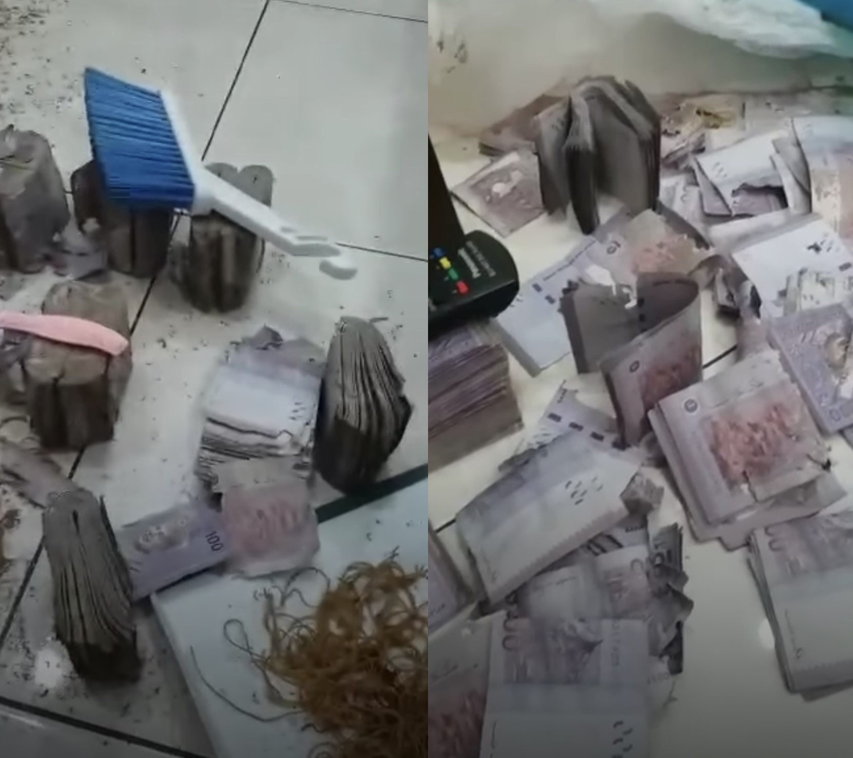 拍摄该视频的男子在视频中说道,这些满满的 RM100 钞票损坏层度各不同,有些被蛀的情况不严重,仍然可以使用,有些则比较严重,他们需要花时间进行处理和分类。