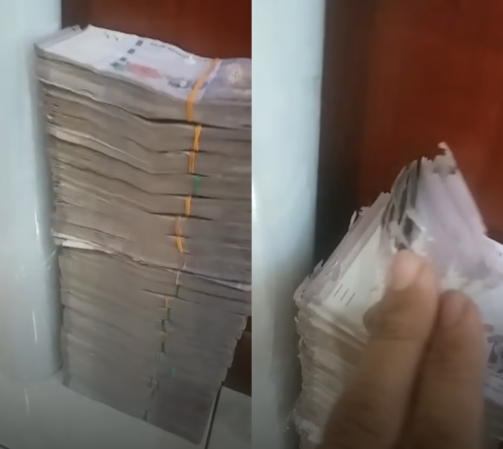 ▼ 一叠又一叠的 RM100 钞票都被蛀坏了!
