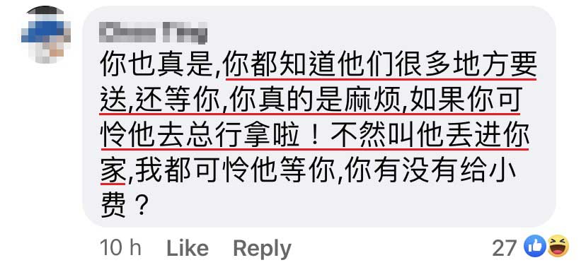▼ 有些网友则认为贴主不应该耽搁快递员的工作时间。