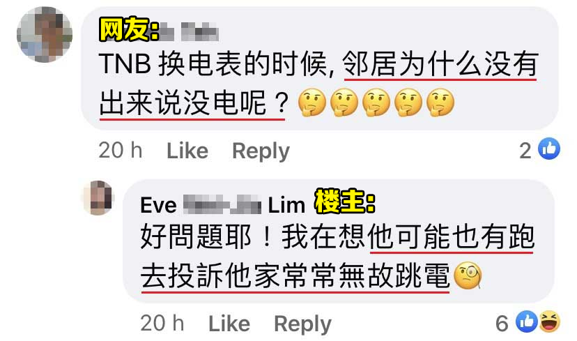 5)根据 TNB 员工的反应,这种事情在 condo 里似乎很常见。所以如果你们也有类似问题可以从这个方向着手,而你如果一直很奇怪为什么自己的电费那么便宜的话,可能苦主就在你身边……