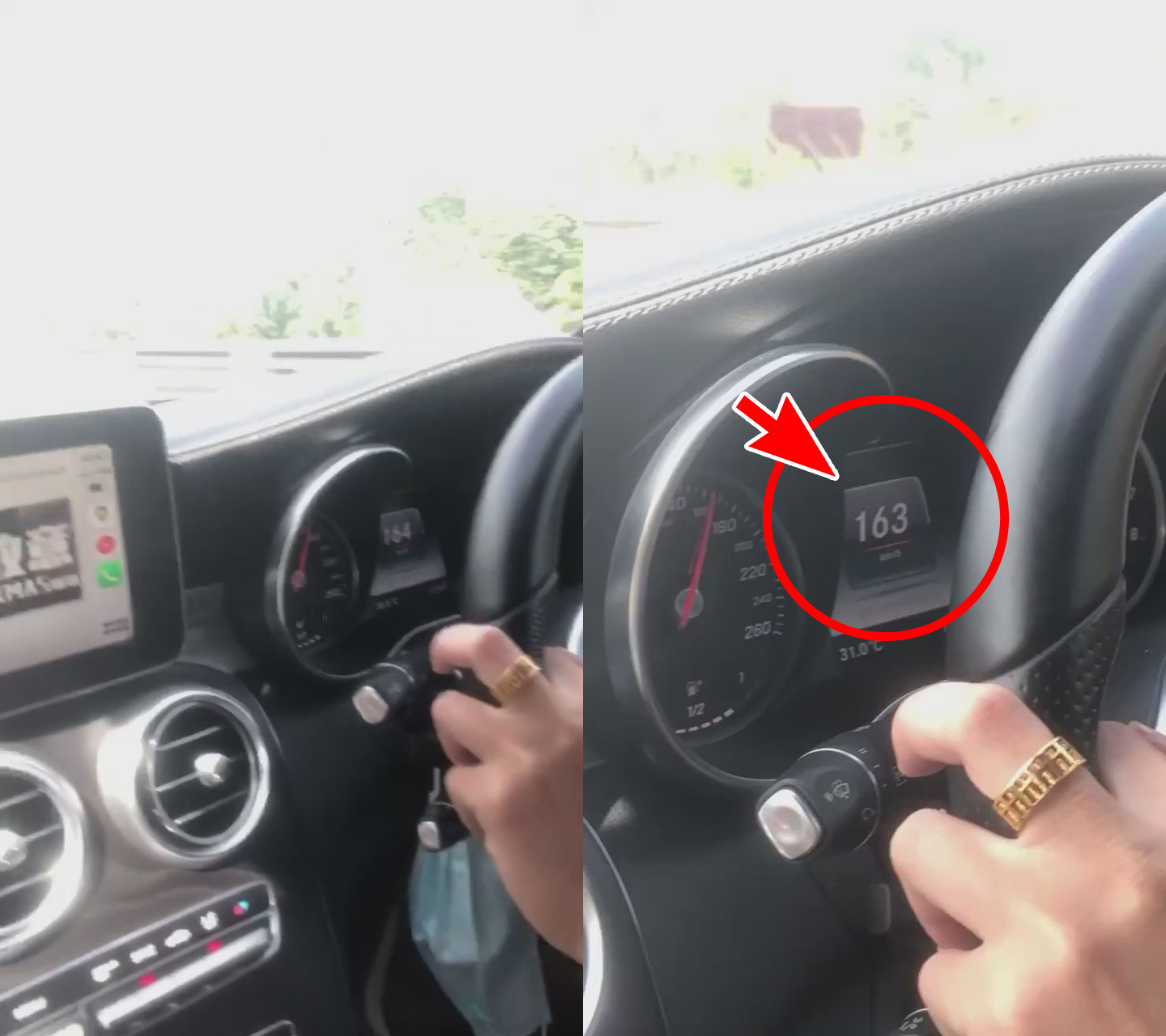 ▼ 即使 Mercedes 已经加速到163公里/时速,离前方的 Myvi 还有一大段距离!