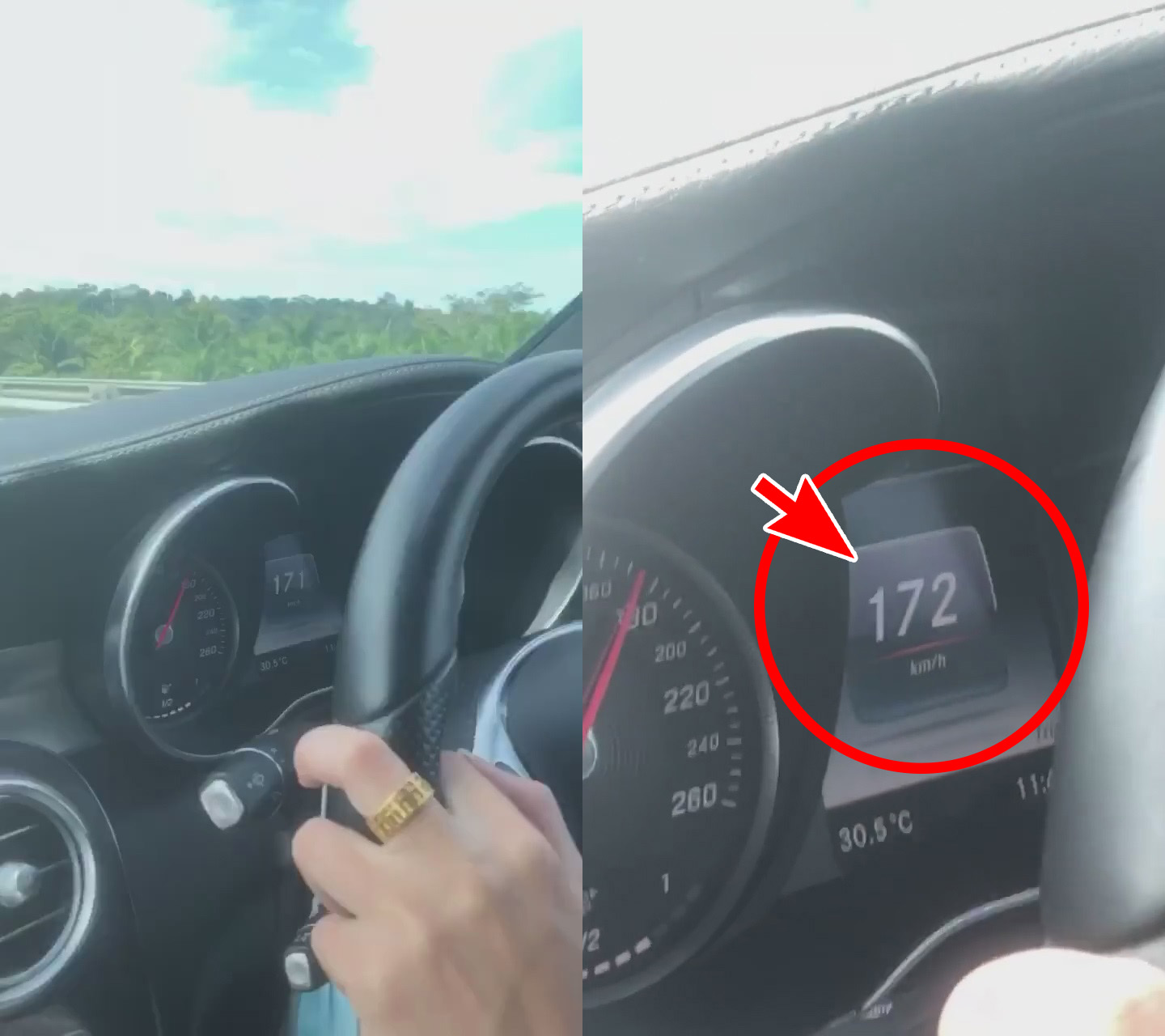 ▼ 一不做二不休!追不到 Myvi,Mercedes 就只好继续加速,时速高达172公里!惊人的是,这时候的 Myvi 依然不慌不忙地在遥远的前方“飘移”着~