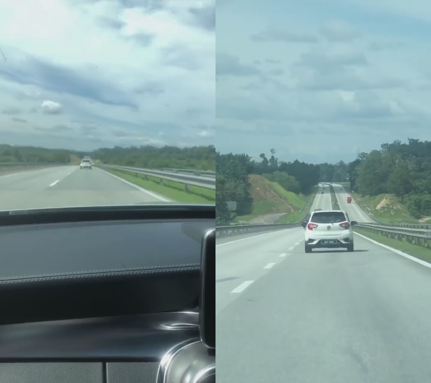 ▼ 视频中的男司机开着 Mercedes 在高速公路上行驶,在他前面的正是一辆第三代的 Perodua Myvi。男司机为了追上那辆 Myvi,于是开始疯狂加速。