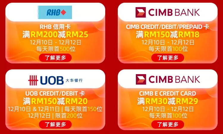 4. Lazada Wallet 刷卡享优惠(12月10日-12日)
